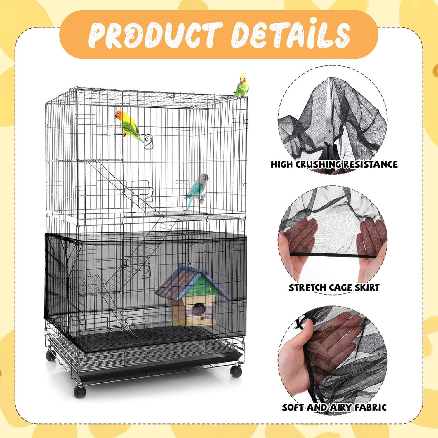 • Suitable for birdcages of different sizes with an adjustable range from 41-67 inches