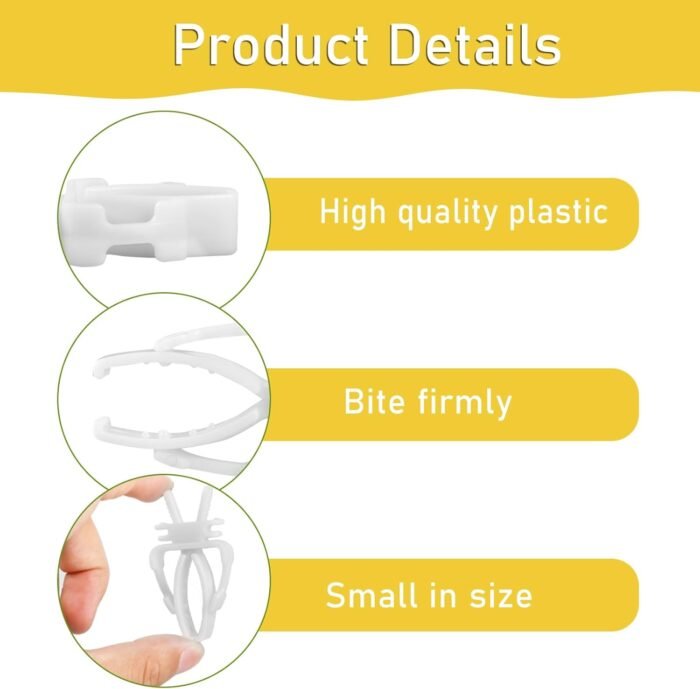 These come in handy for the skirt on my bird cage which is too large for the cage. I use them to clip parts of the cover to bars of the cage to make it fit better.