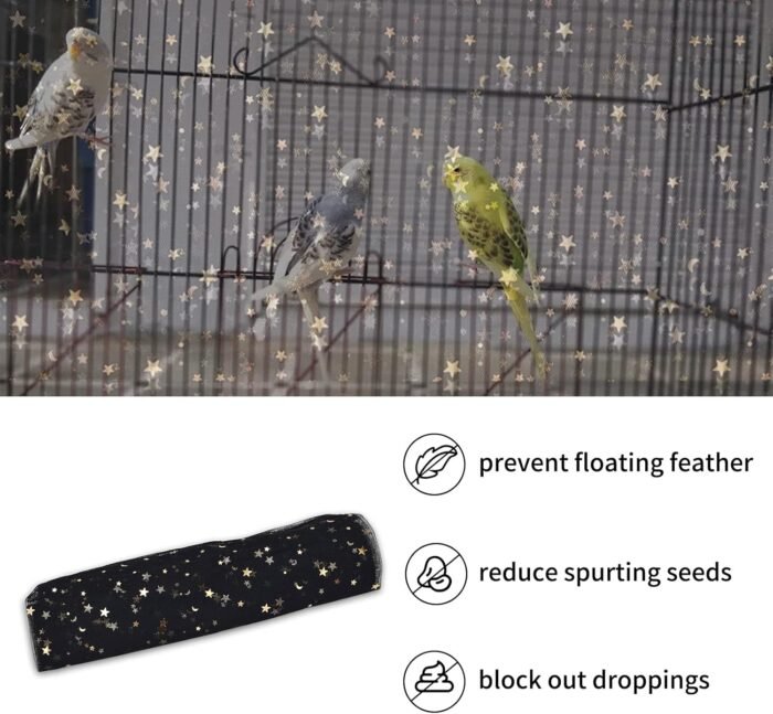 The bird cage net cover features a beautiful design with stars and moon, which birds, especially parrots, love. The cover is designed to provide a comfortable and stimulating environment for your pet.