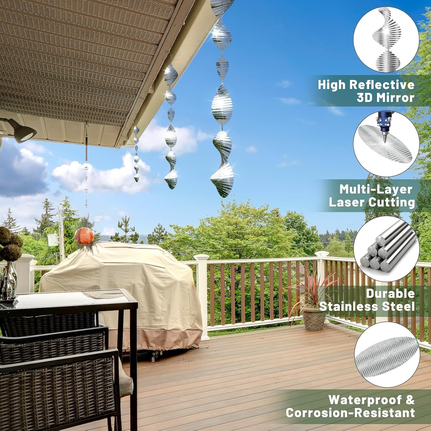 - Adjustable and Connectable: Includes 12 pcs double-sided high-reflective 3D mirror bird scare discs, 4 pcs 360° rotating hooks, and 12 pcs connecting hooks for enhanced effectiveness.