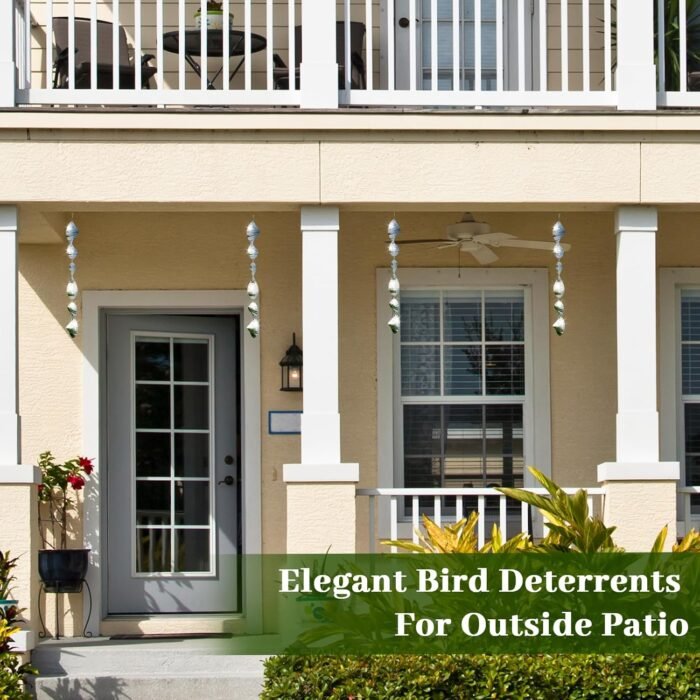 Our back patio was struggling with bird issues. In particular, our grill, which thankfully is always covered. I did a little research on how to deter bird activity near your home, patio, etc., and learned that sparkly, reflective items can sometimes help. I decided to give these a try.Itâs been just over 1 week and weâve had ONE âaccident.â And it was the side of the gazebo that did not have one of these hanging from the rafter. So weâve moved one of these over to that wall and have had no issue.Itâs important to note that the grill is not under the gazebo, but about 3 feet to the side of it. But there placement of the sparklers seems to be working for the grill since there has been no issue. And it is a brand new grill cover so it would be very easy to see any new deposits.Since hanging them, in addition to almost no more bird droppings, they have held up to crazy wind gusts and pouring rain. They are a little bit adjustable, you shorten the string if you wan only 1 or 2 pieces dangling but weâve got all 4 of them at their full length. Also, they are just really pretty!Weâll probably get one more of something, maybe a wind chime, for a wall side that has a bit less exposure to the detergents but overall, we are really pleased with how well these are working at deterring bird activity near our patio and gazebo.