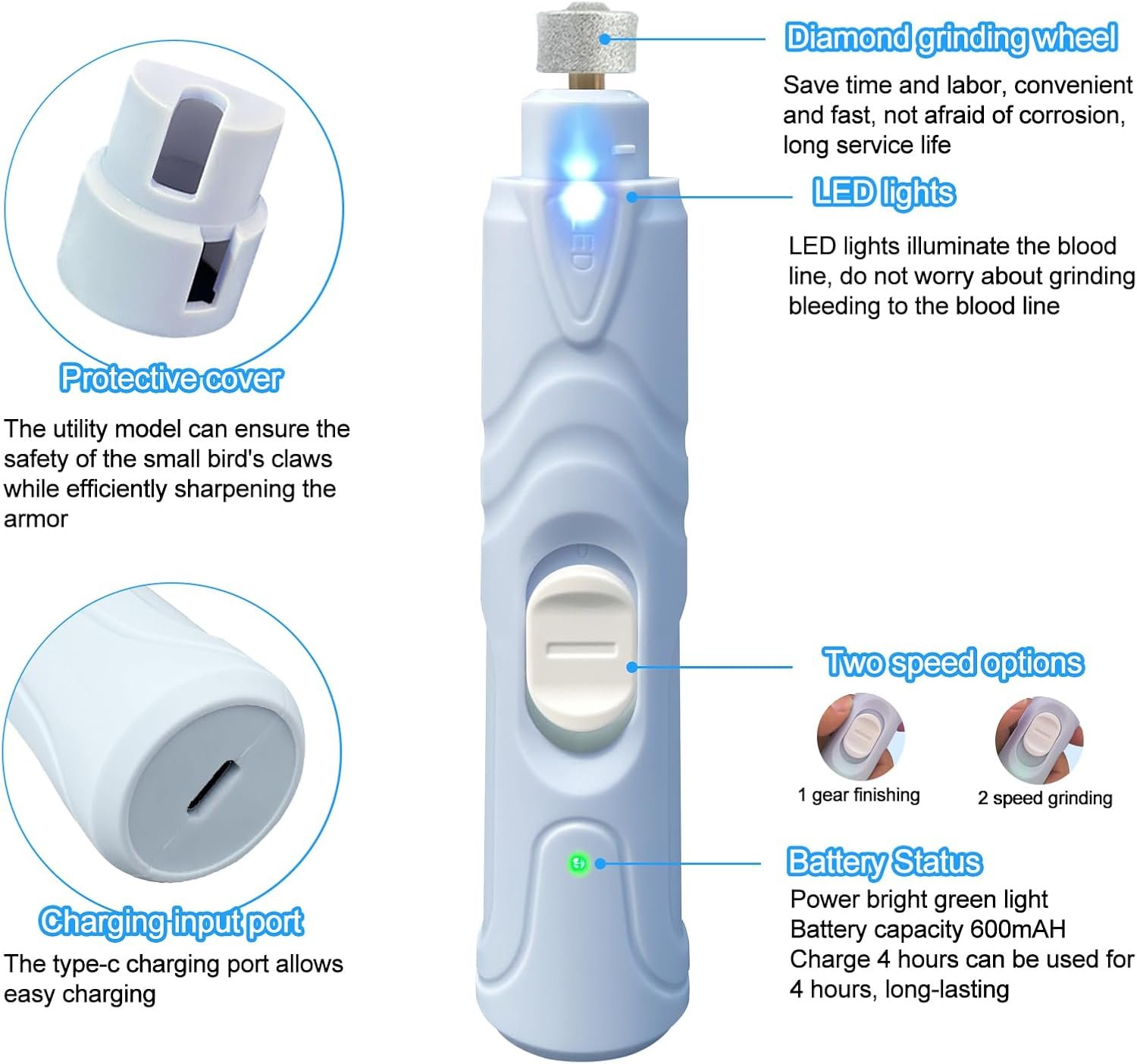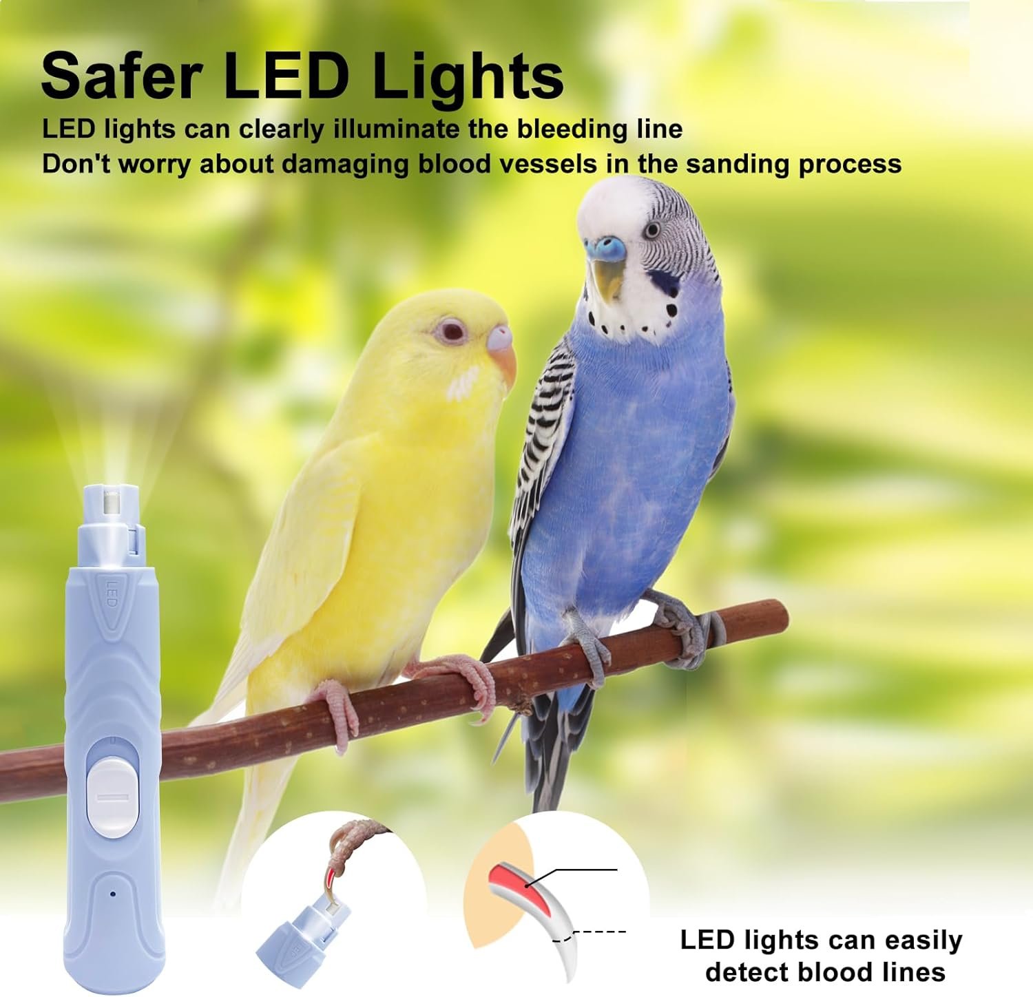 • An LED light that clearly shows the blood line of the parrot’s nails, ensuring safe grinding