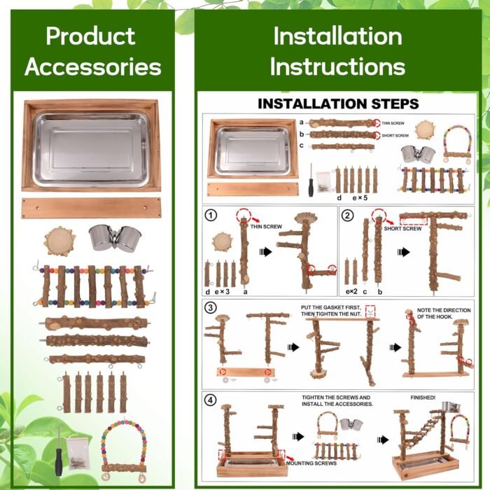 - Exercise and entertainment for the birds: The diverse areas, irregular perches, and bird toys provide a fun and stimulating environment for the birds.