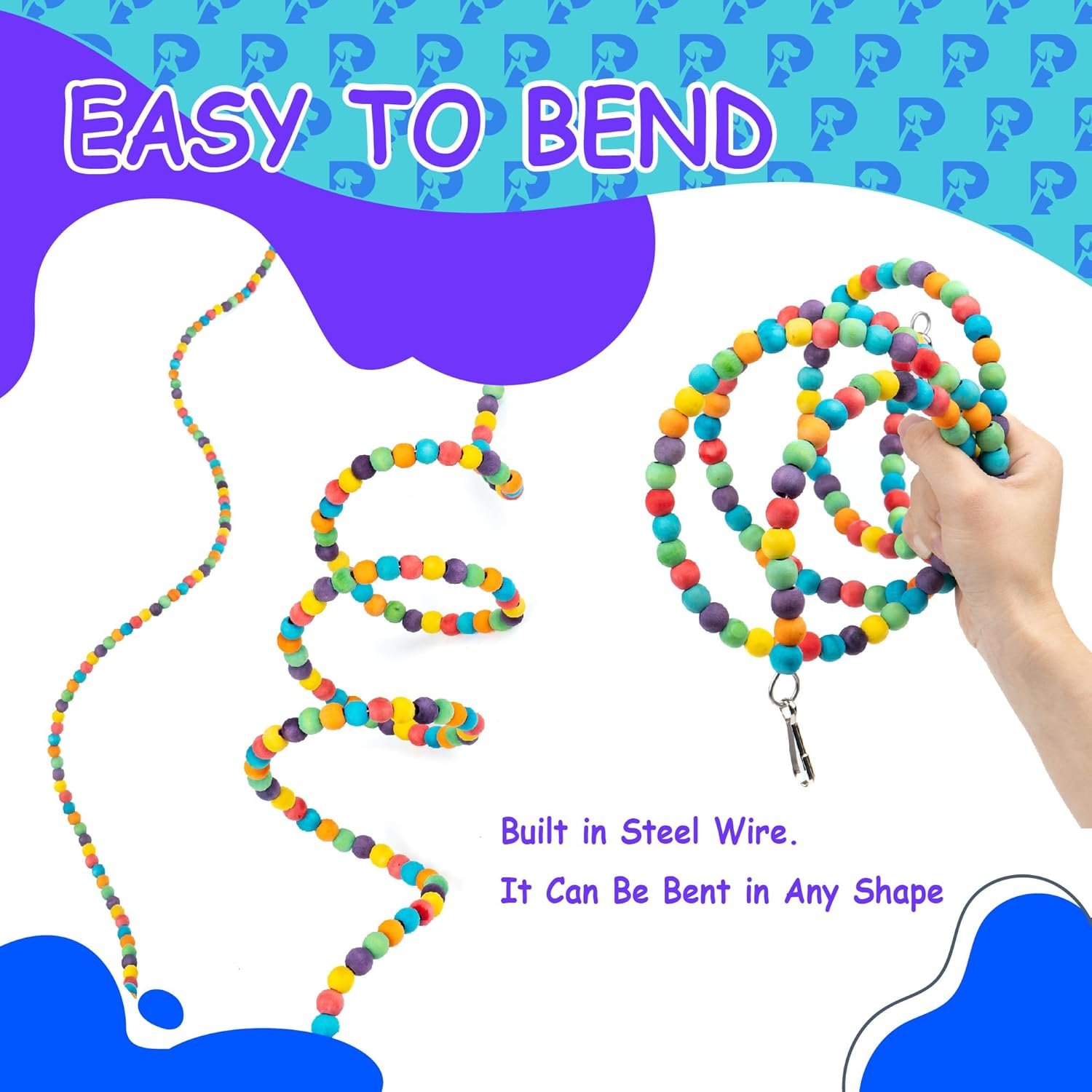This pack of 2 was great for our parakeets’ cage. We hung one rope as-is from the ceiling of the cage. With the other rope, we stretched it out slightly and then hung it horizontally from one side to an adjacent side of the cage. This gave them a sort of fun path to follow. These ropes are made of strung wooden beads, and the diameter of each bead is only about half-inch. This makes them great for budgies, parakeets, and finches, but I believe are too small for larger parrots.