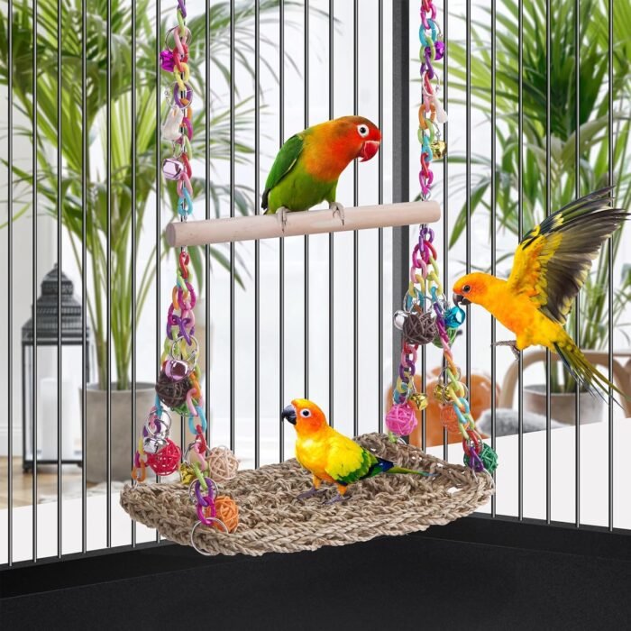 - Natural Material: The bird swing toy is hand-woven from natural chewable seagrass, safe for your bird to chew or peck at.