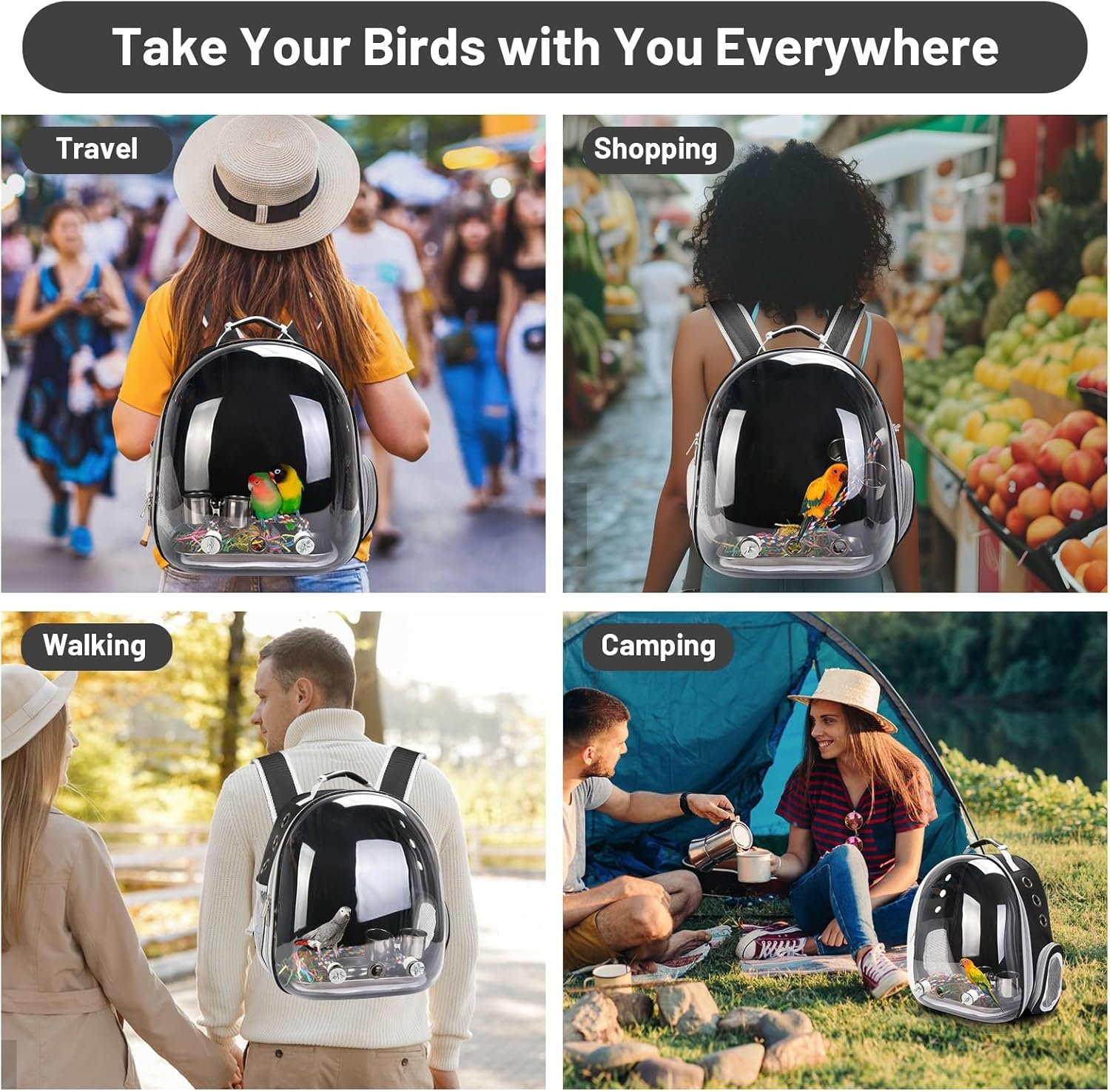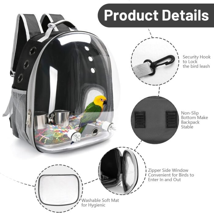 The bird travel backpack is designed to provide a comfortable and safe space for your bird to travel in style. With its breathable and perspective design, your bird can enjoy fresh air and scenic views during outdoor adventures.
