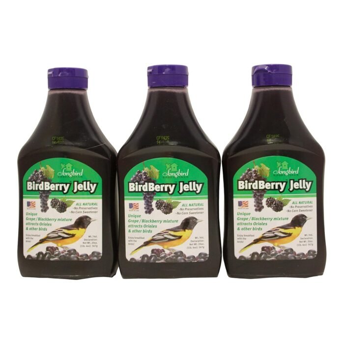 - Units: 60 Ounce (3 Squeezable Jelly Bottles, Each with 20 Ounces of our Unique Blend of Black Berry and Grape Jelly for Birds)