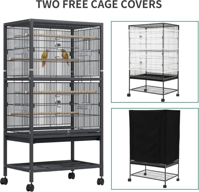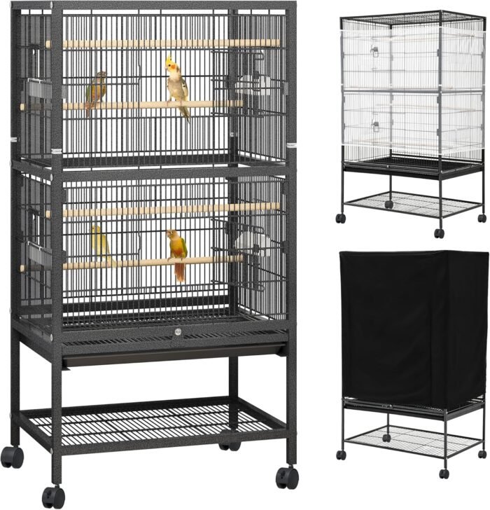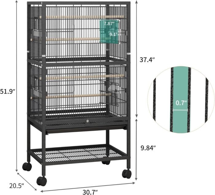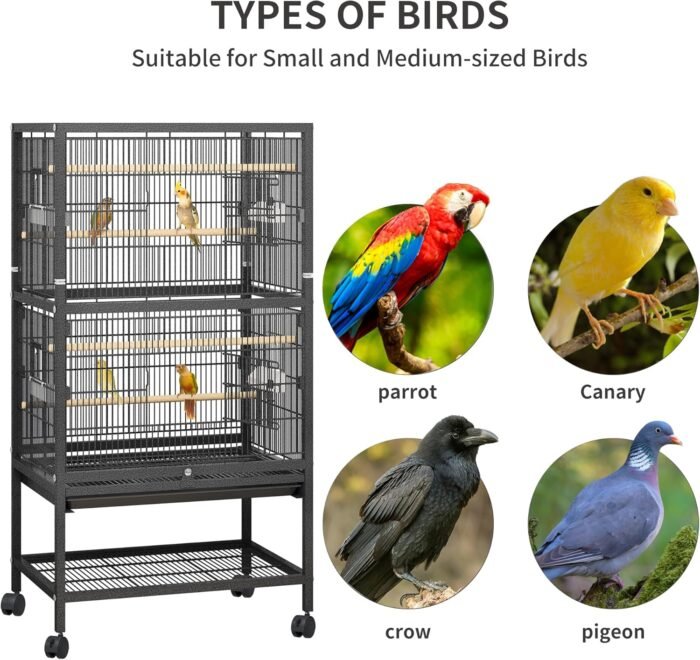 - Ideal for Small/Medium Birds: With dimensions of 31”×20”×52”(L×W×H), the large bird cage can easily accommodate 3-4 birds like budgerigars, parakeets, parrots, cockatiels, lovebirds, etc.