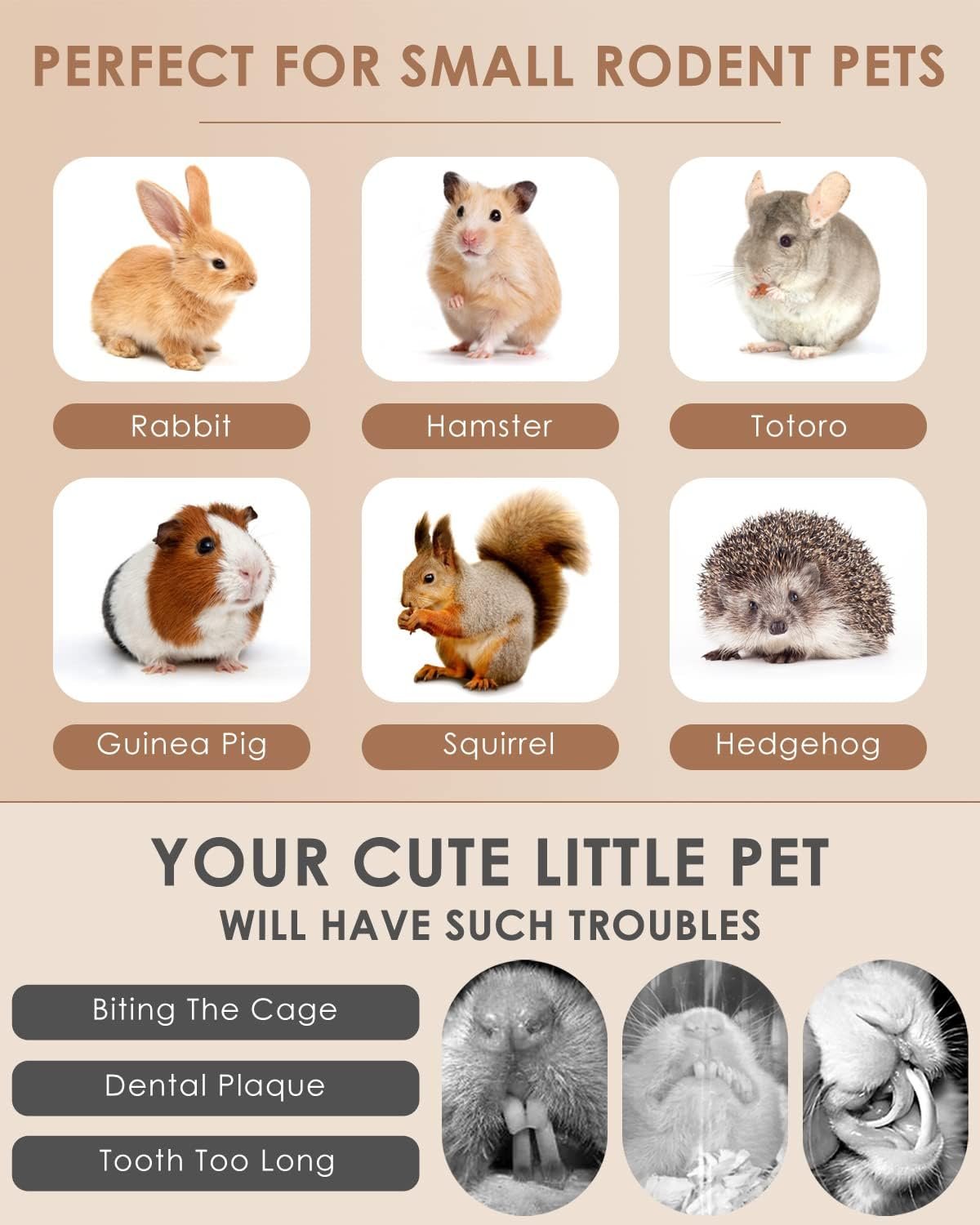 • Promotes dental health by trimming long teeth and preventing overgrowth