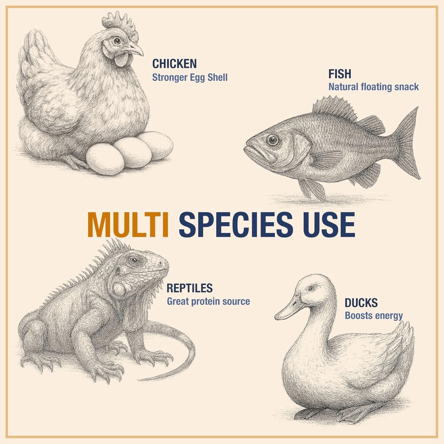 - Perfect for chickens, ducks, reptiles, fish, hedgehogs, and wild birds