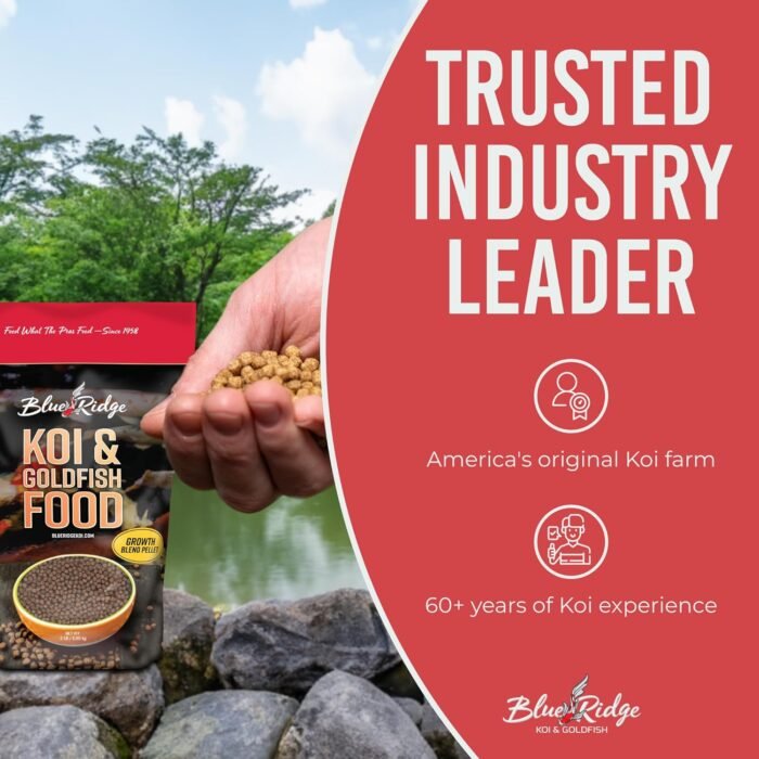 Home Fish & Aquatic Pets Blue Ridge Koi Fish Food 2lb – Koi Food 3/16” Large and Mini Blend Growth Formula, Goldfish Food, Premium Fish Food for Ponds, Ponds Fish Food, Floating Pond Pellets