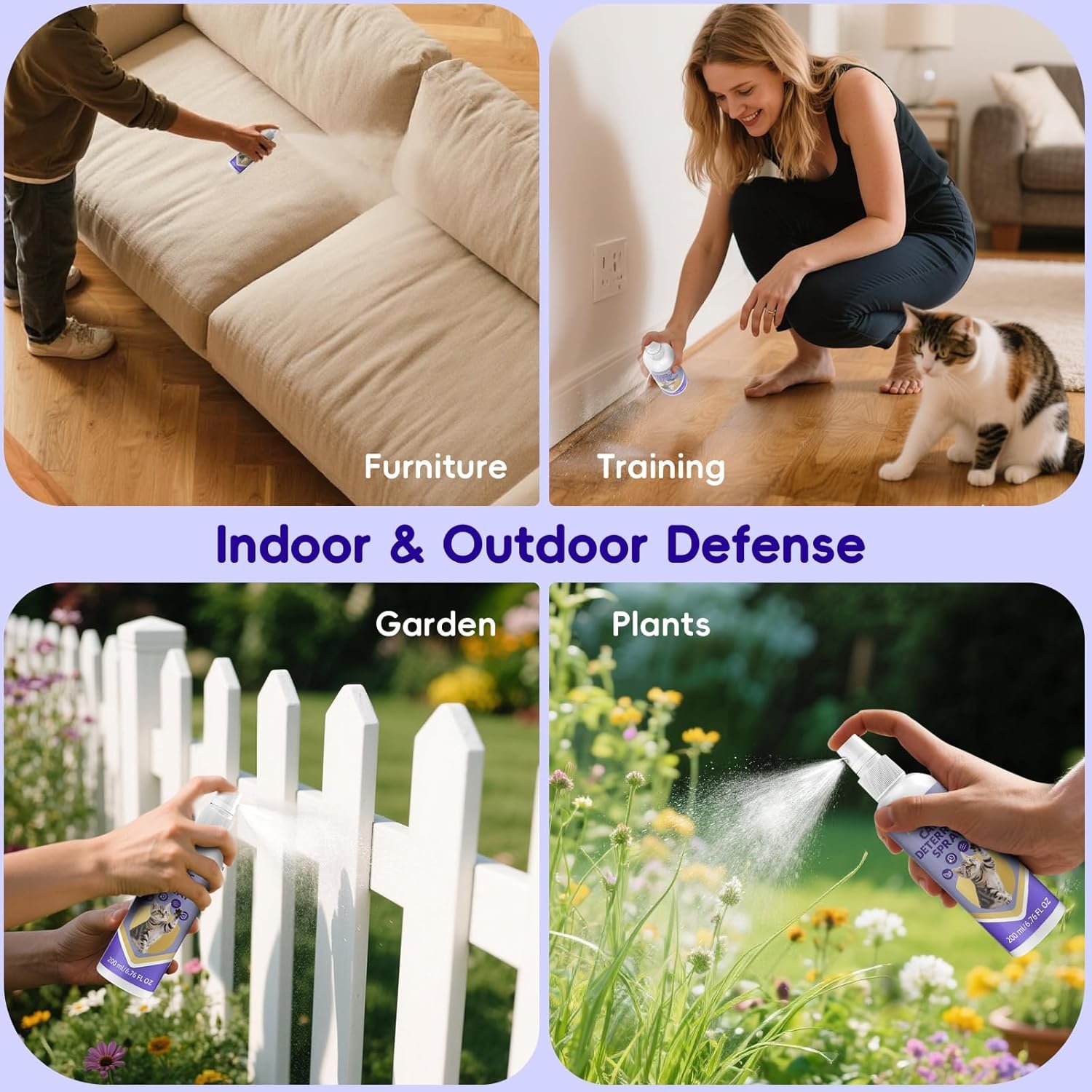 - Creates invisible barriers anywhere—indoors or outdoors—to safeguard your spaces from curious felines
