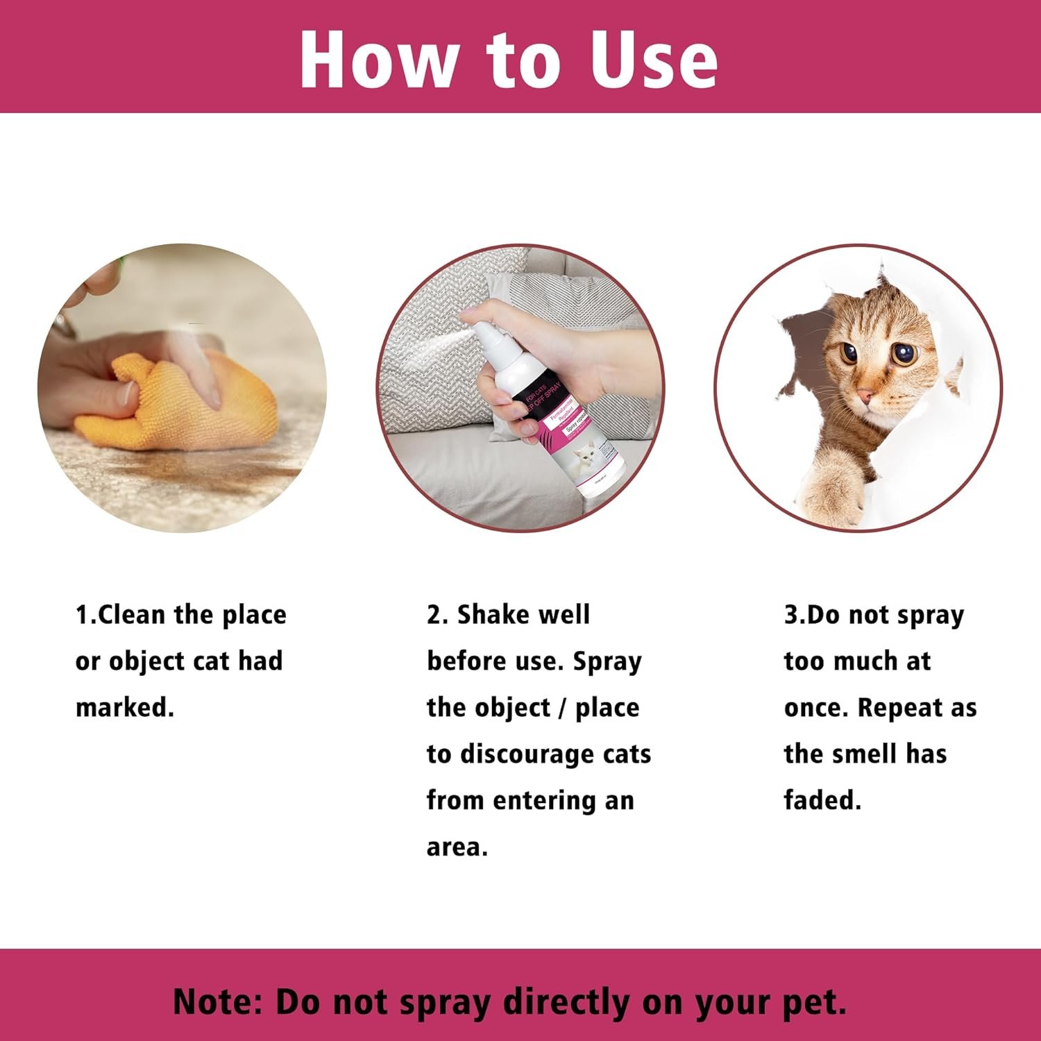 We recommend using this spray in places where cats often haunt to eliminate any lasting odor. When the smell is emitted, you can spray it several times. Generally speaking, cat spray should be used regularly for 1-2 weeks to achieve the best results.