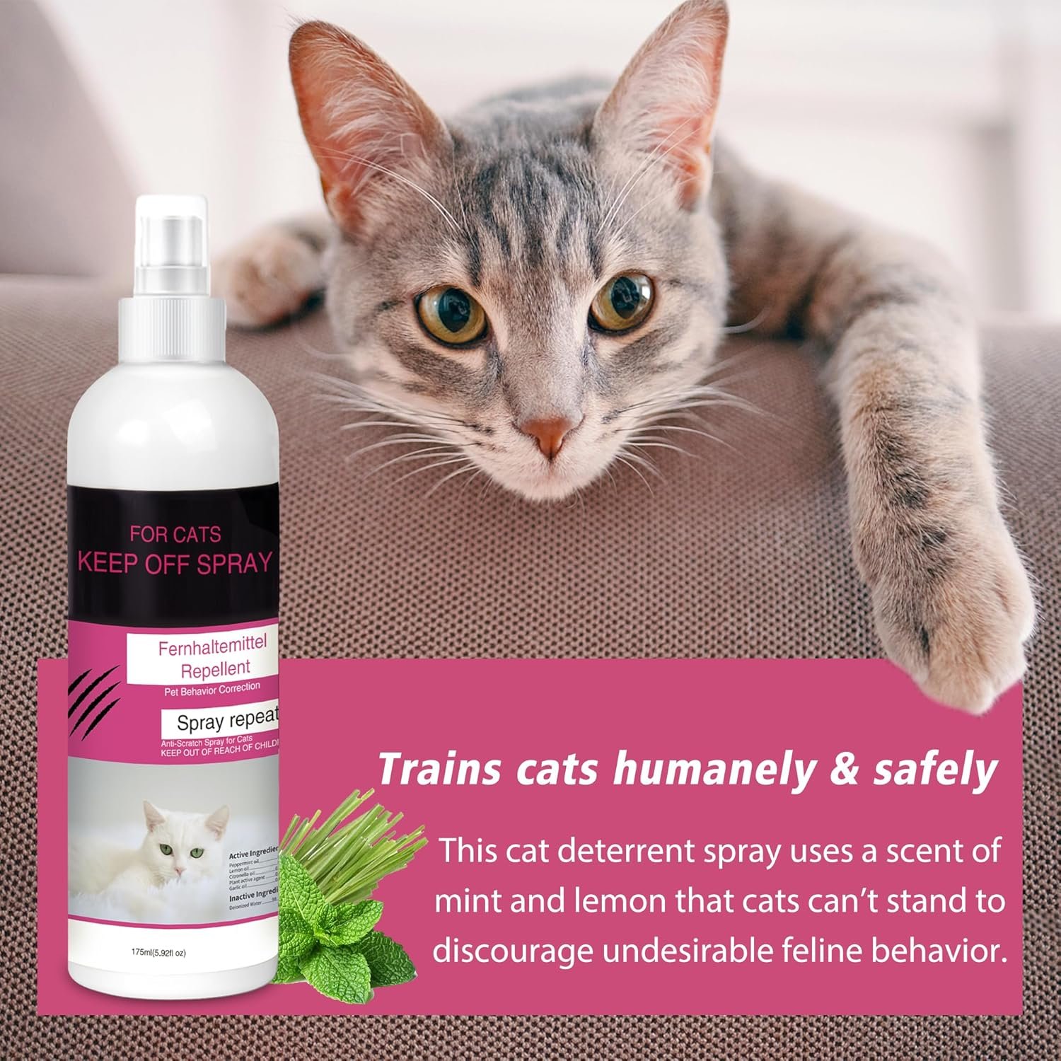 This effective cat deterrent spray prevents most cats from scratching furniture and sofas. Our cat repellent spray for furniture can be used for things you want to prevent your pets from chewing and scratching indoors and outdoors, including wires, clothing, furniture, sofas, curtains, plants, or other things they scratch.