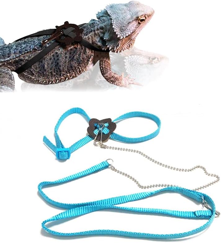 Adjustable 4.72inch Reptile Lizard Harness Leash,Turtle Lizard Pet Traction Belt Bearded Dragon Accessories Soft Small Pet Animal Harness Rope Outdoor Used(Blue) $6.99