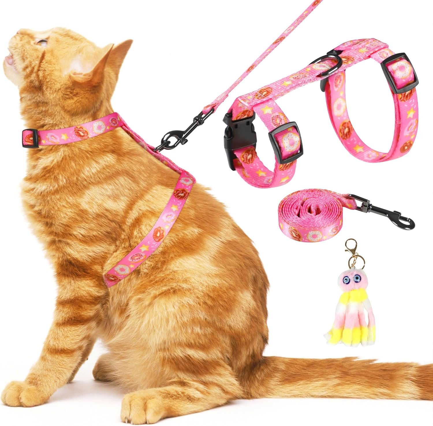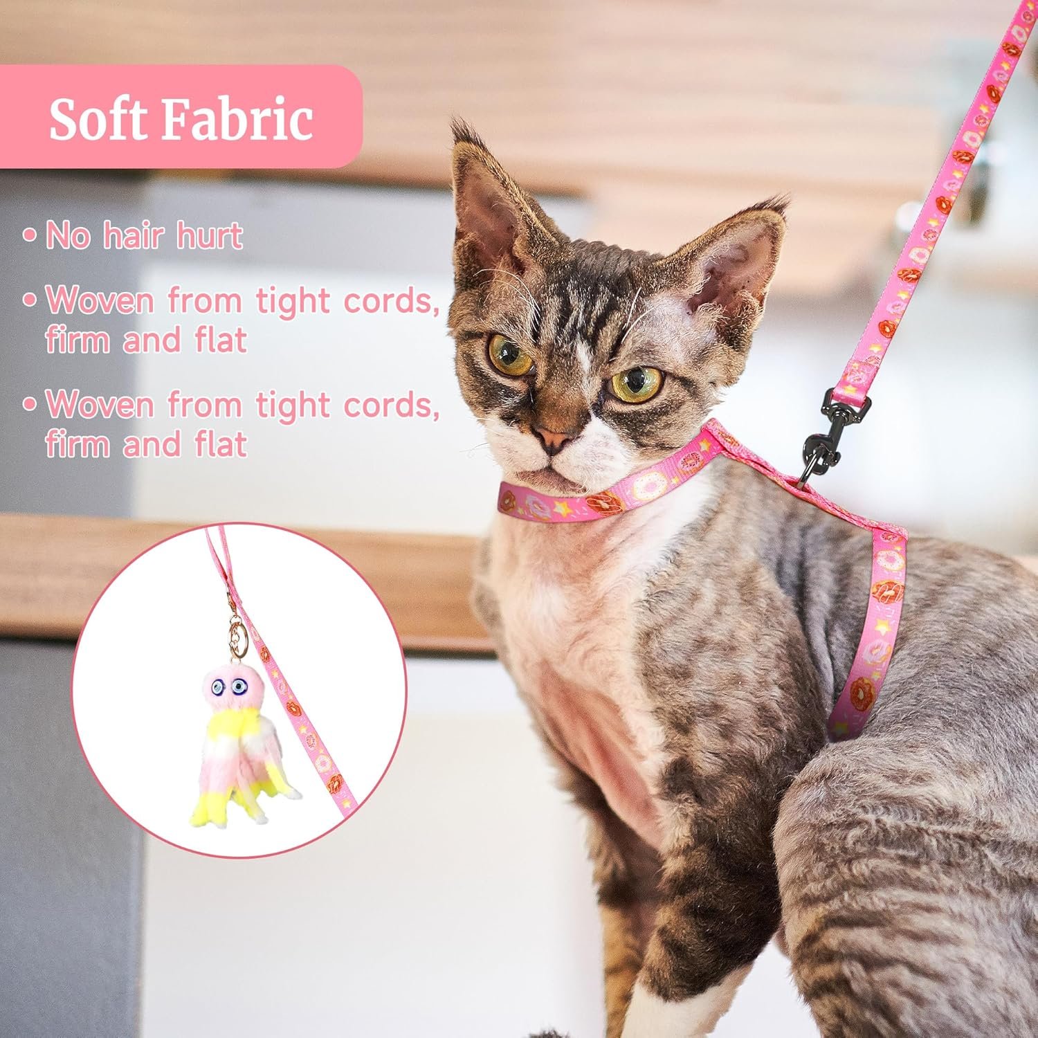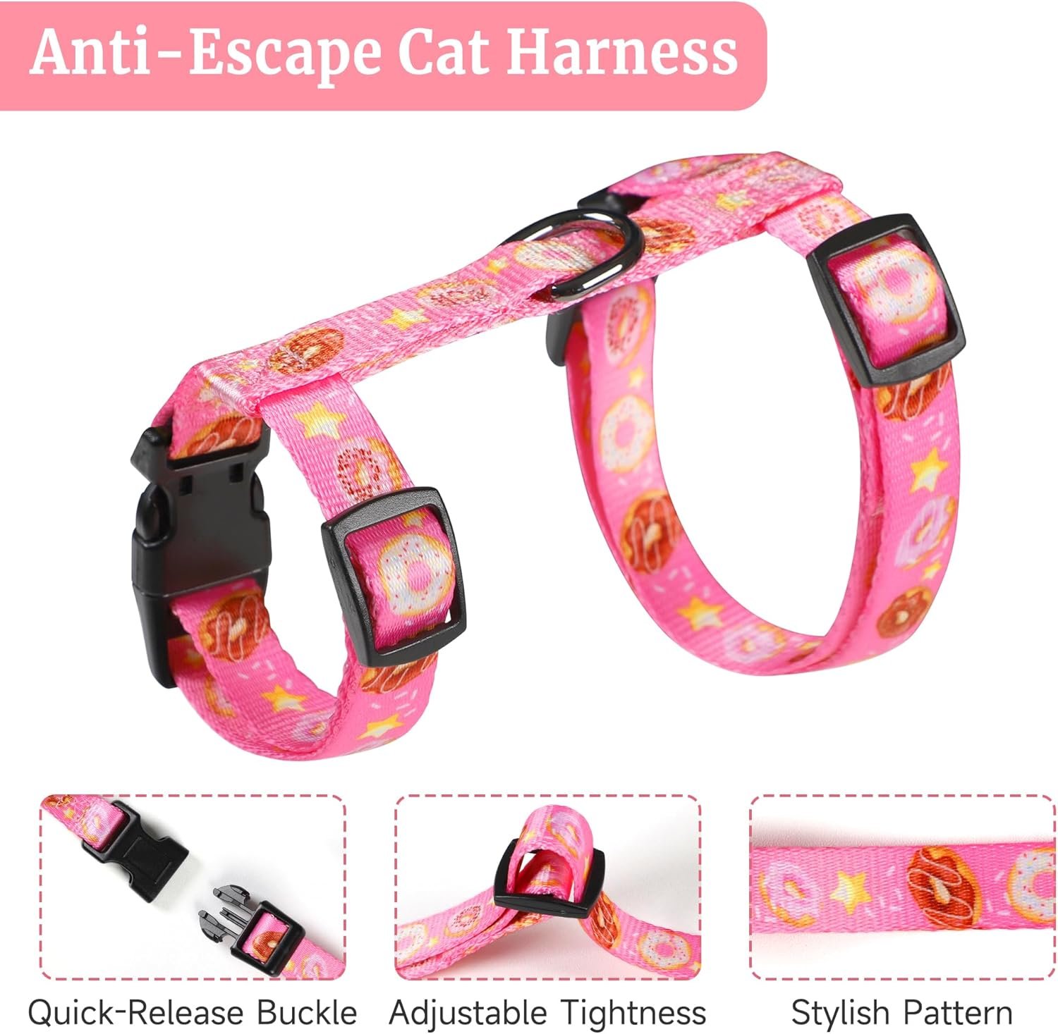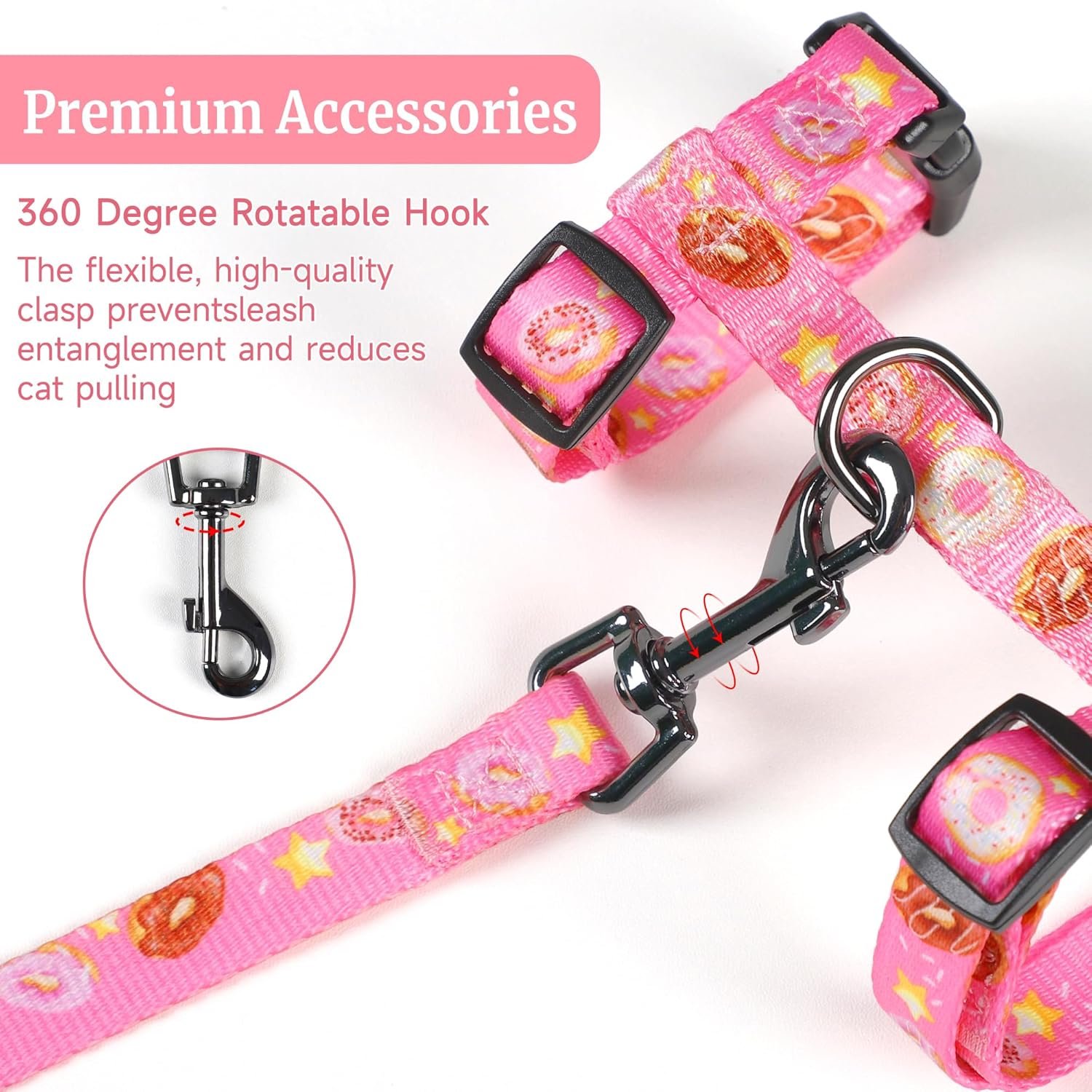 Cat Harness and Leash Set – Escape Proof Adjustable Cat Harness, Comfortable Soft Lightweight, Use Safe & Easy, Walking Travel Kitten Harness for Small Medium Large Cats Pink
