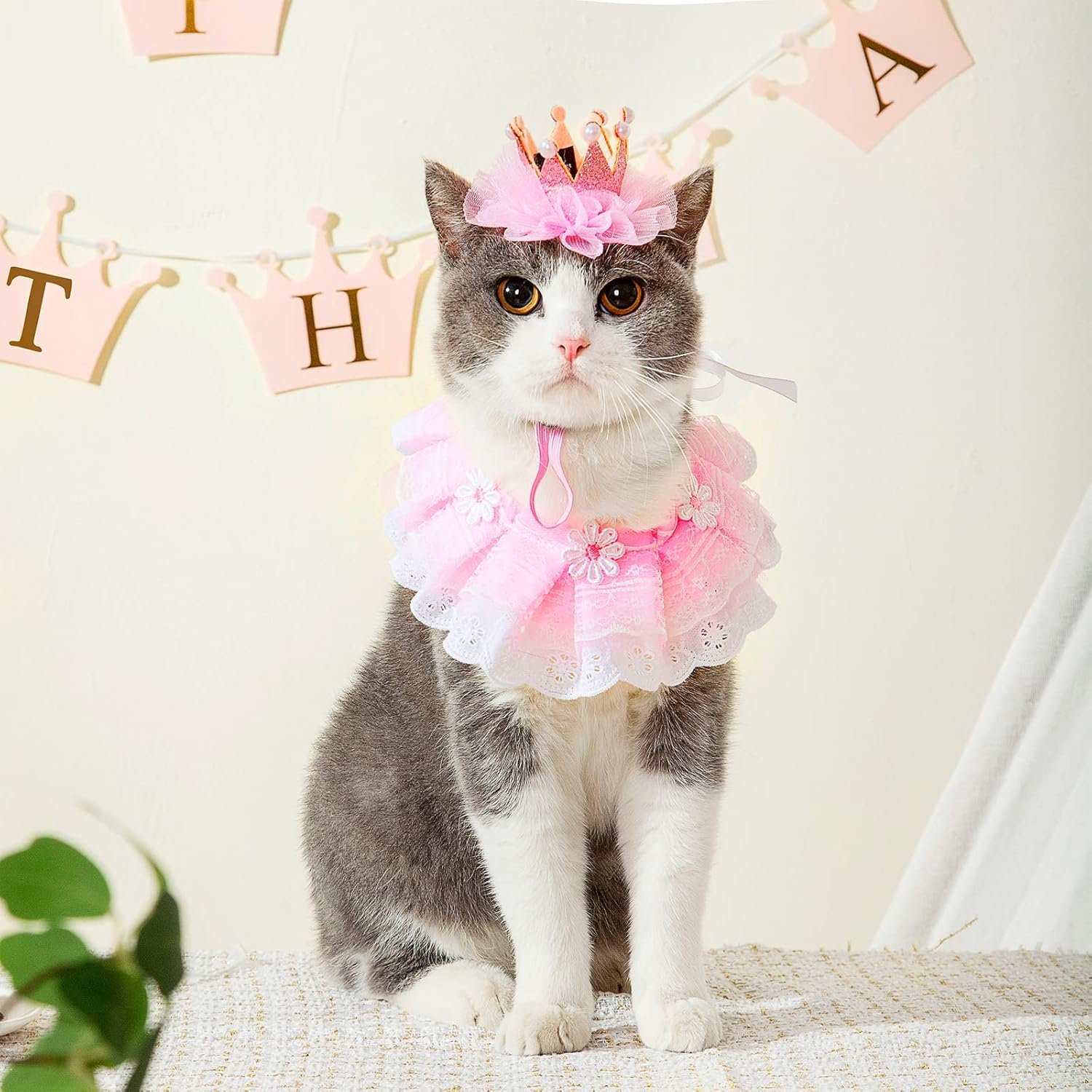 This cat birthday crown and lace bandana set is perfect for: