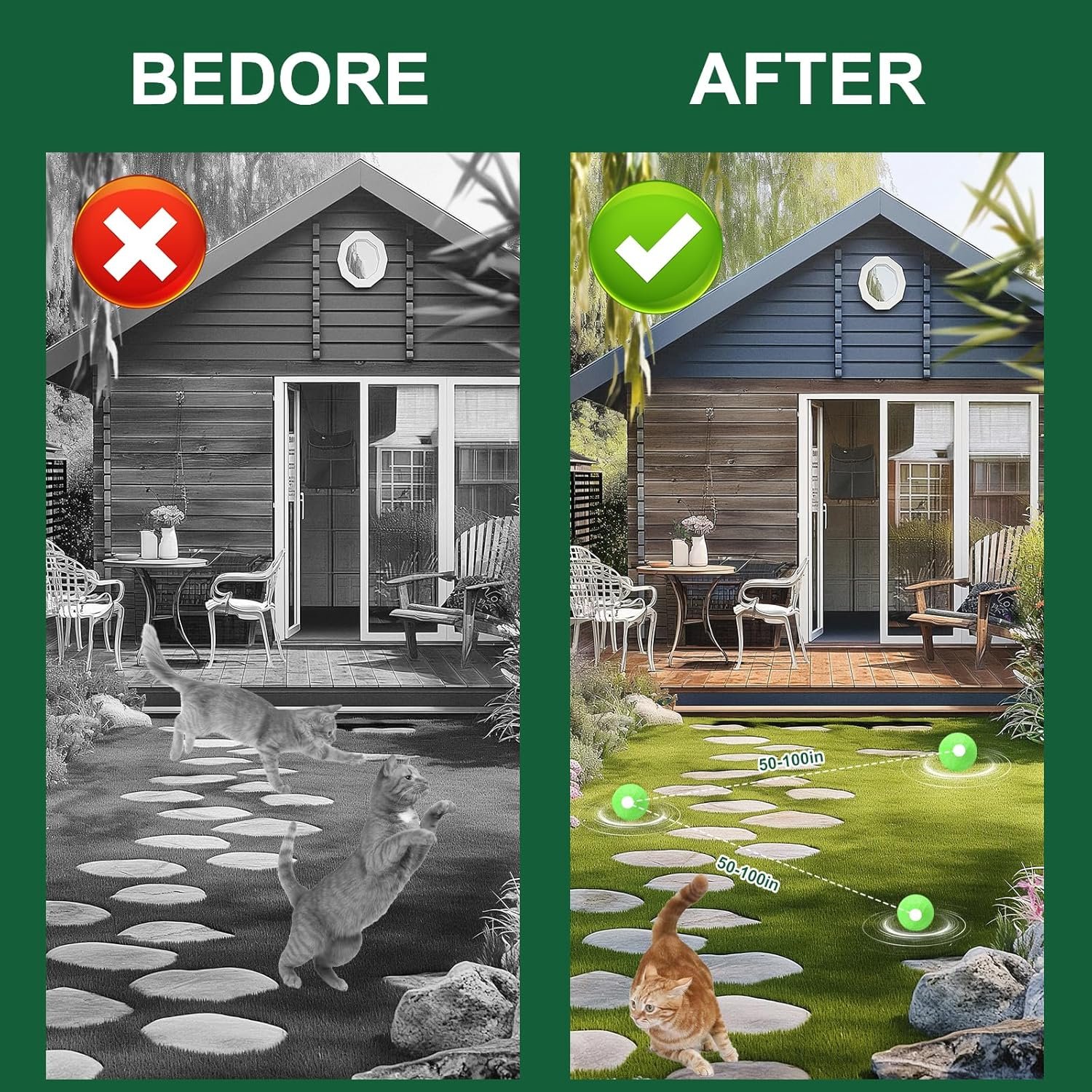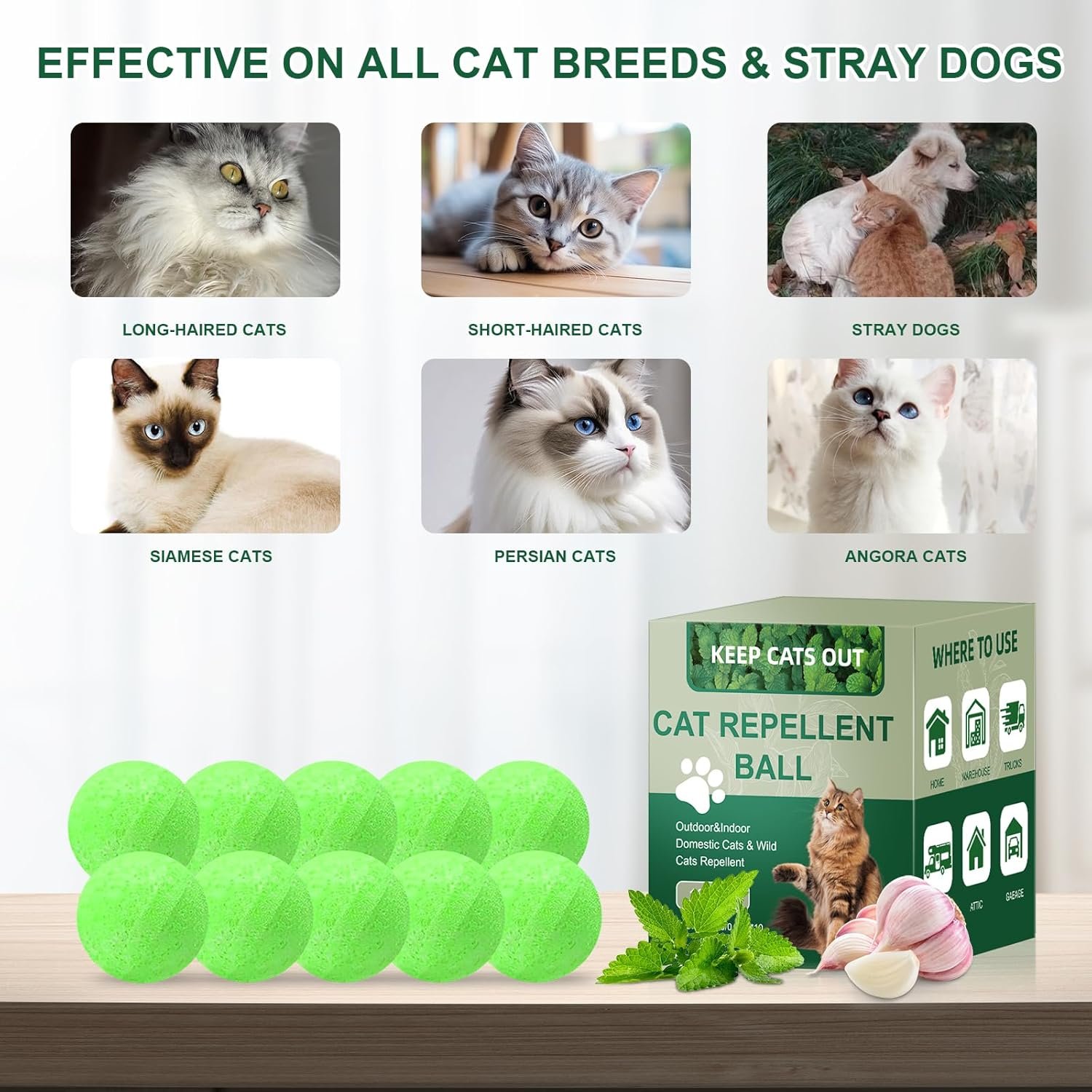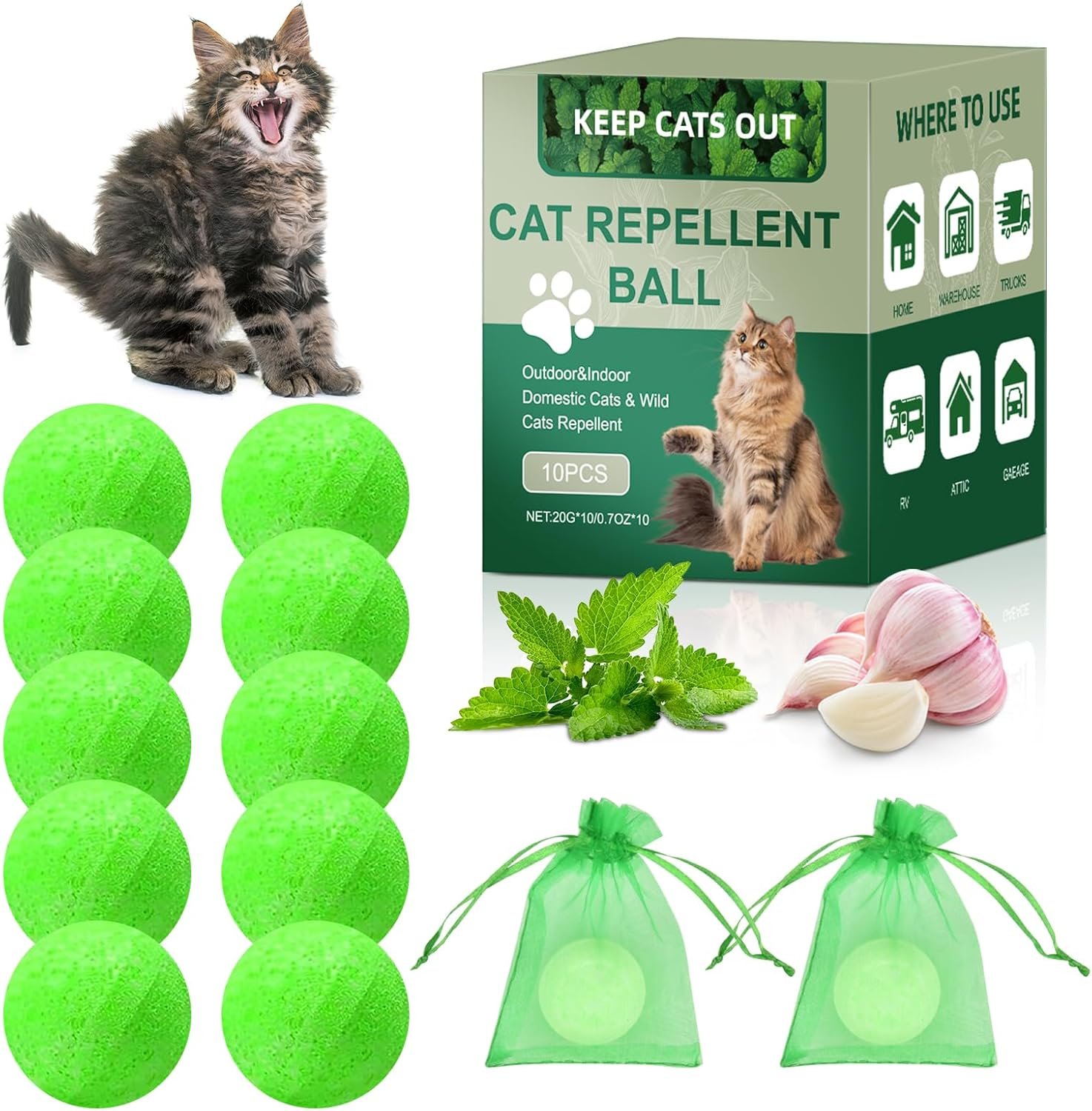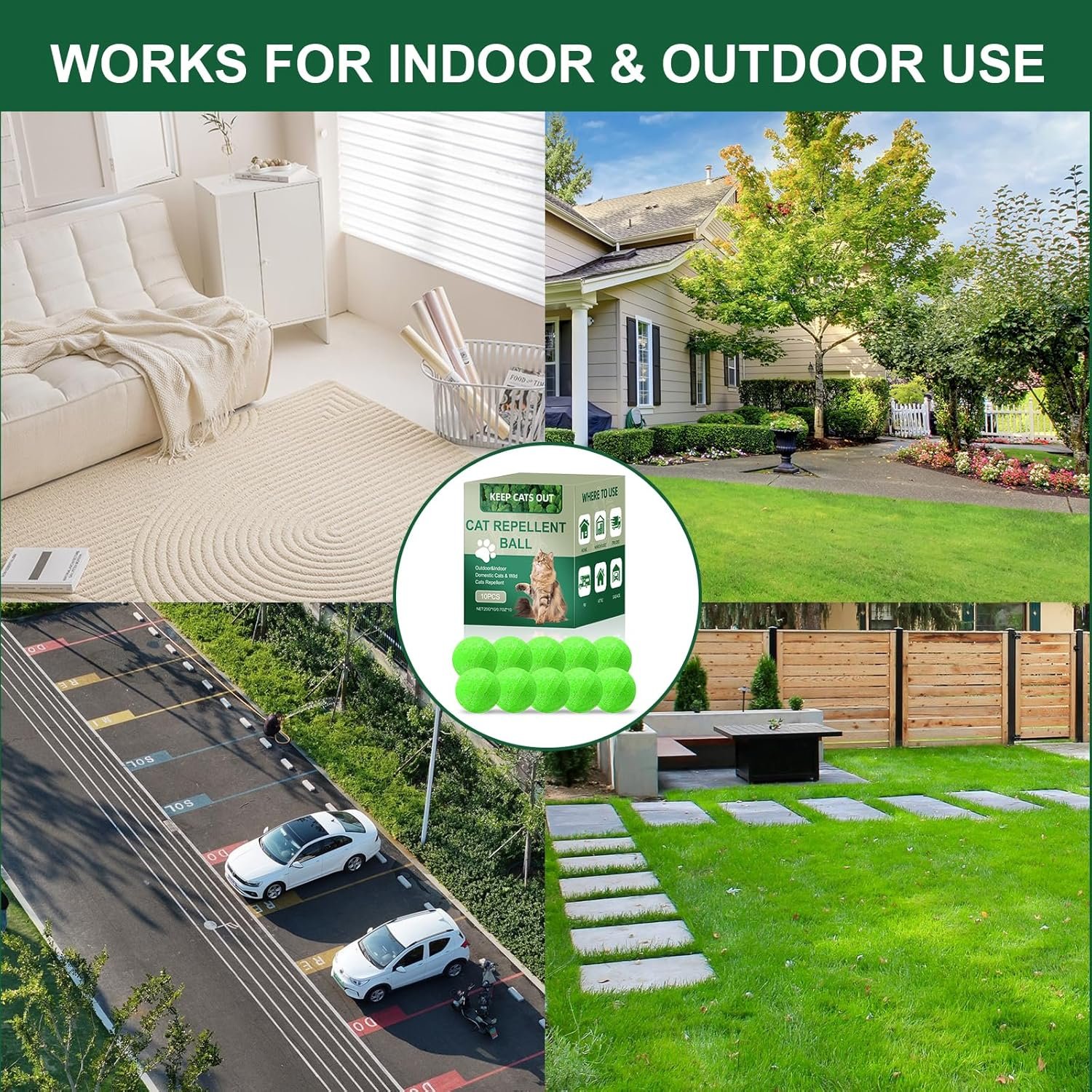 Cat Repellent Outdoor & Indoor Use is designed to help keep cats away from gardens, lawns, plants, and furniture, supporting a cleaner and more comfortable space. The product features a plant-based formula and is made for year-round use, withstanding sun, rain, and wind without losing effectiveness.