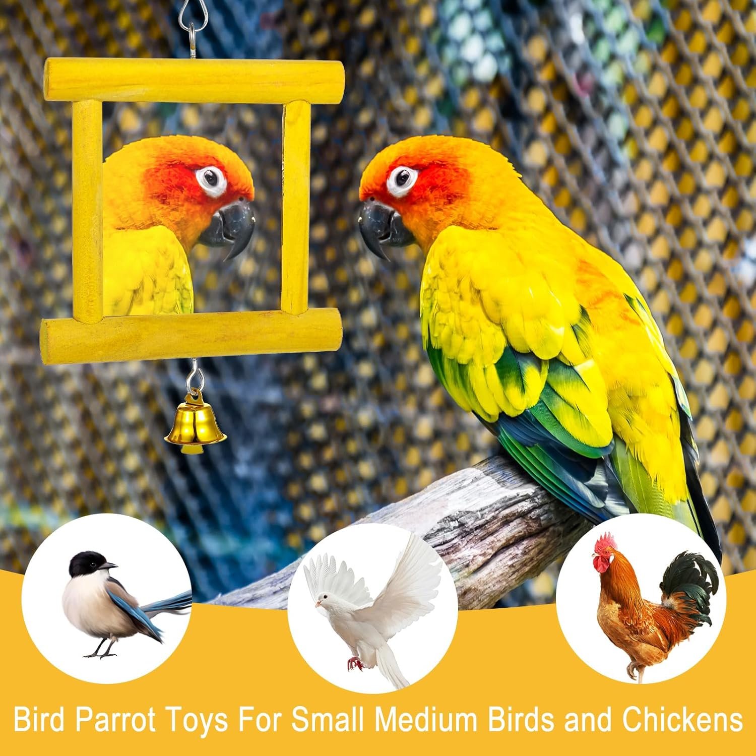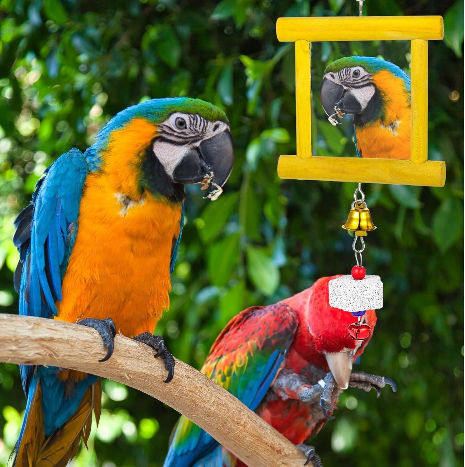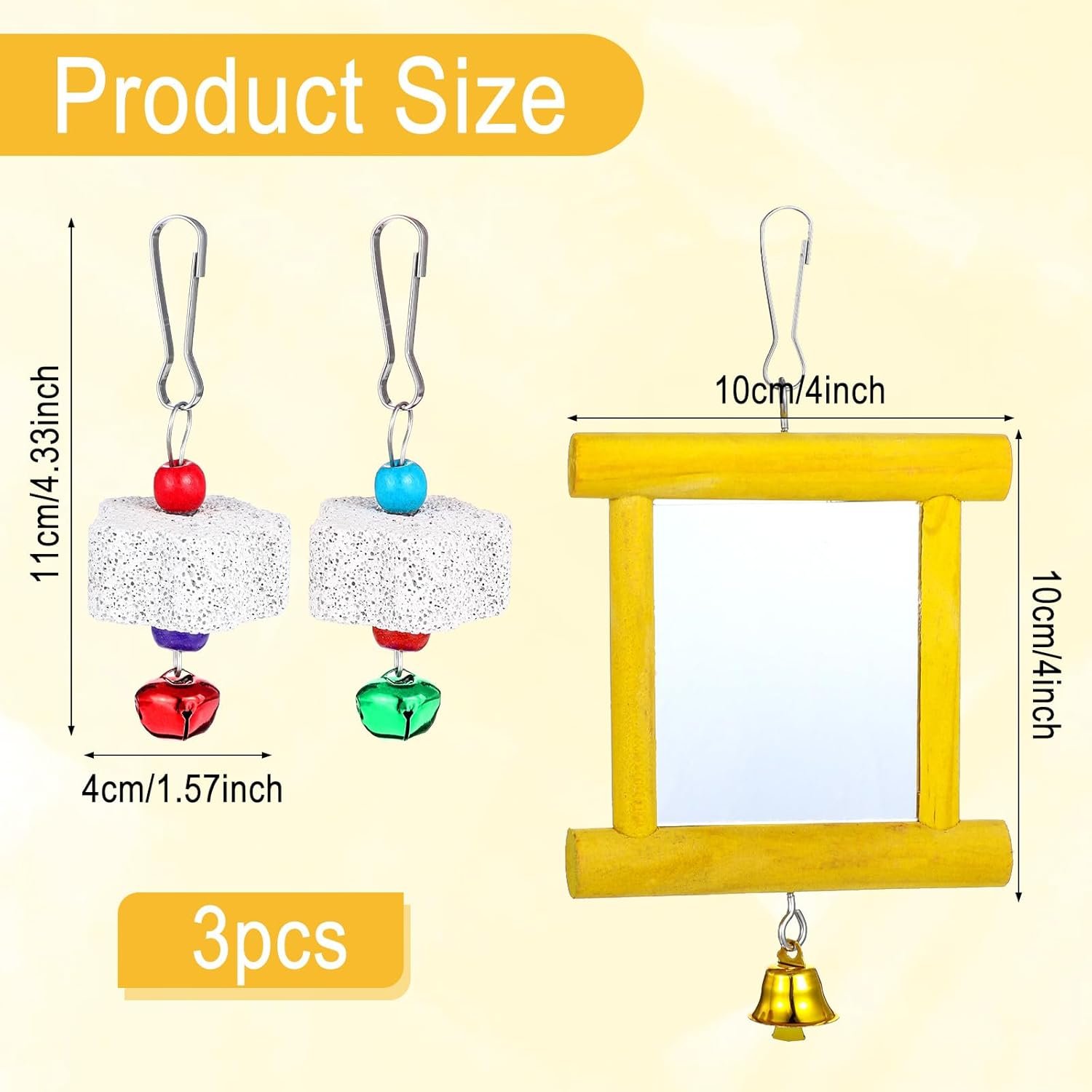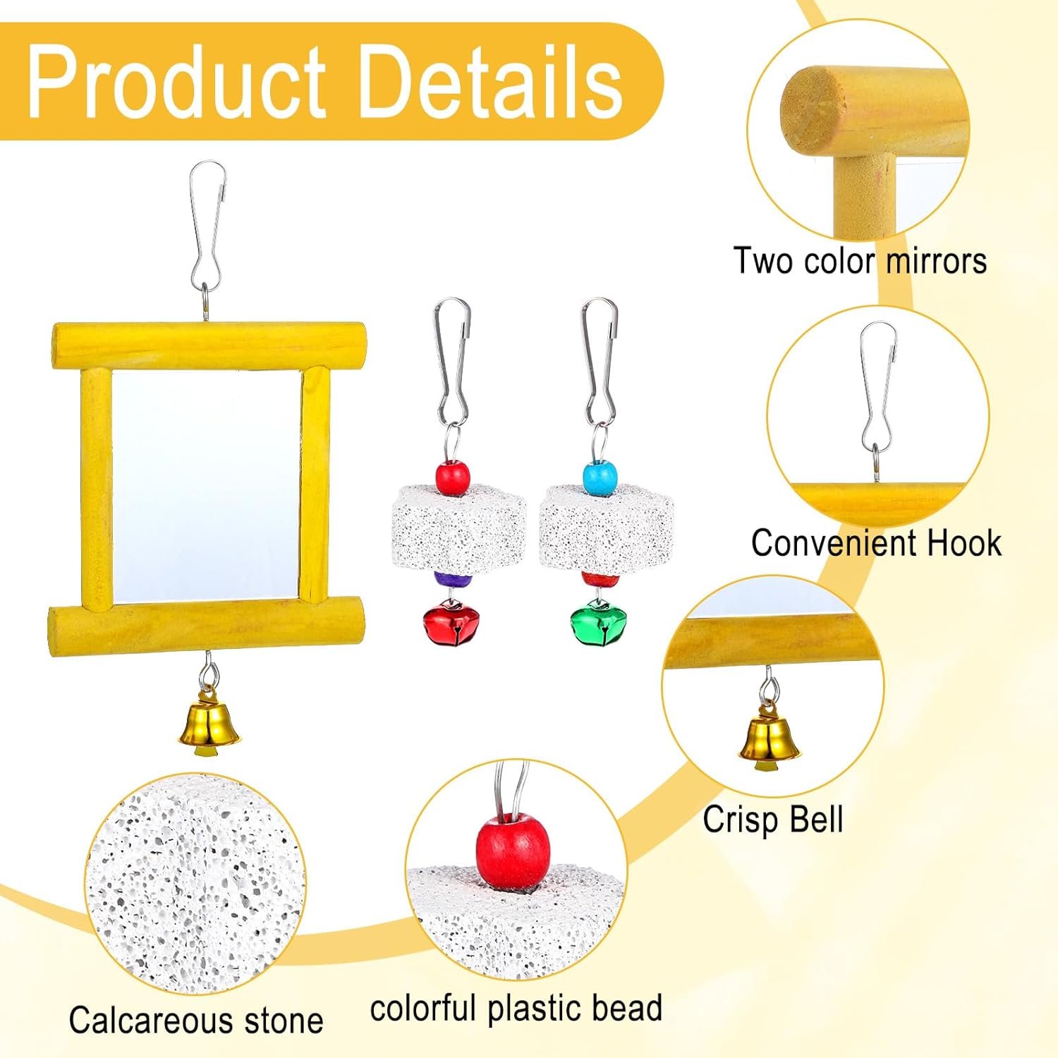 - Hanging bell parrot chicken swing mirror for visual stimulation