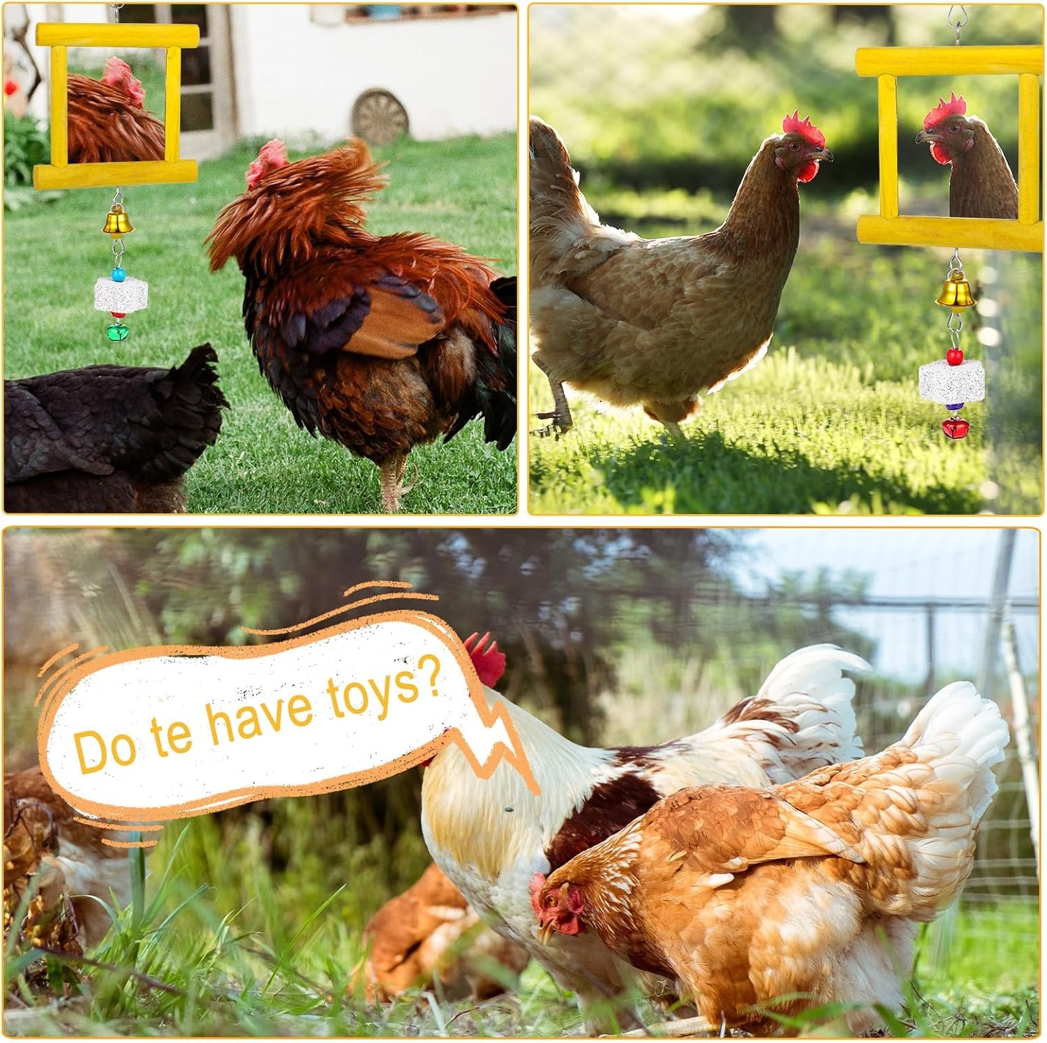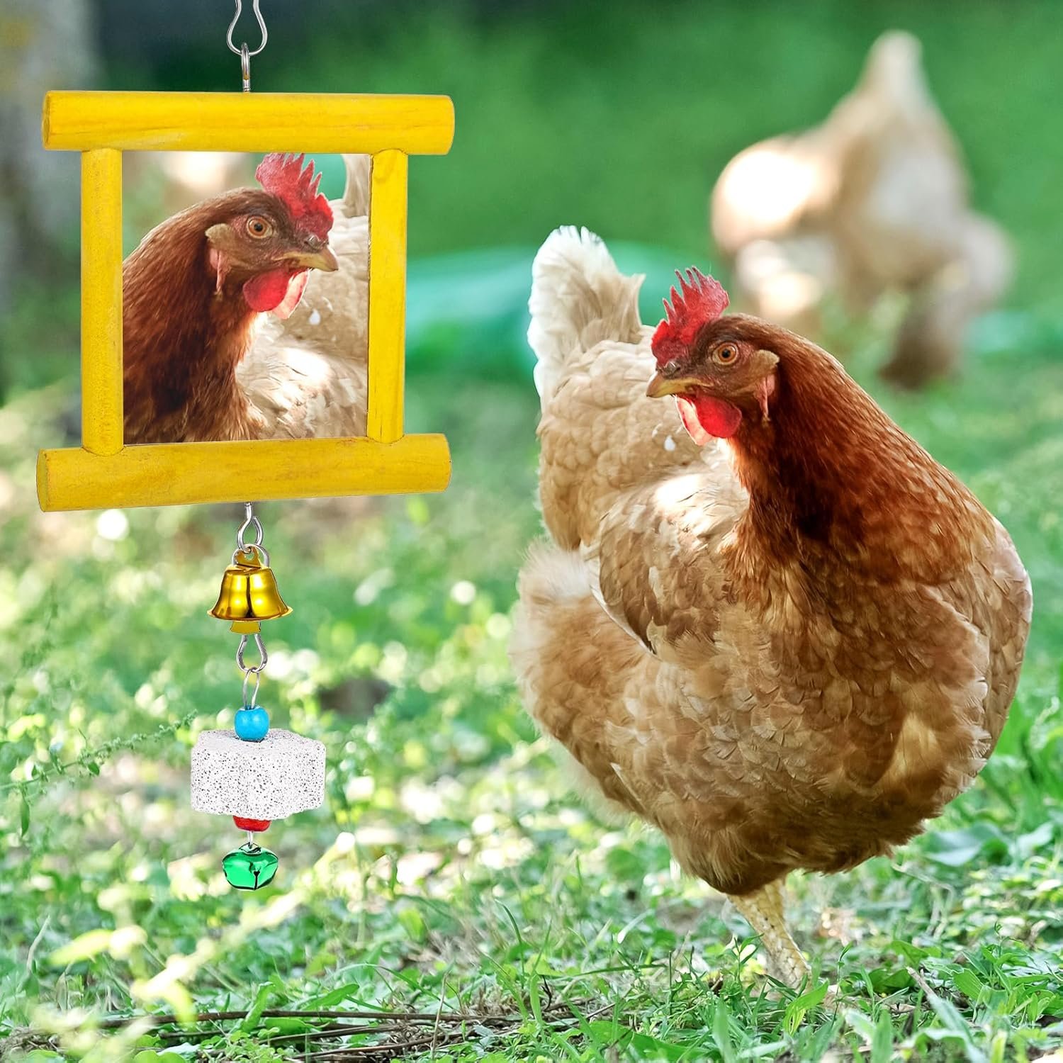 Lnngub chicken toys are the perfect addition to any chicken coop, offering both entertainment and enrichment. This set includes a hanging bell parrot chicken swing mirror and two beak grinding stones, designed to keep your chickens engaged and healthy.