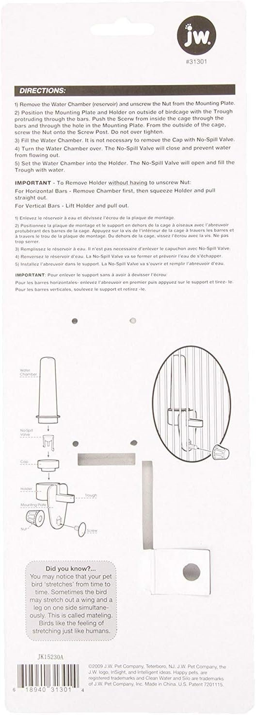 The 7 inch length bird waterer is designed for parakeets, canaries, cavaliers, and other small birds. It comes in assorted colors, making it a great addition to any bird’s cage. This waterer is manufactured by JW Pet, a reputable brand in the pet industry.