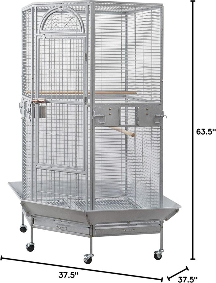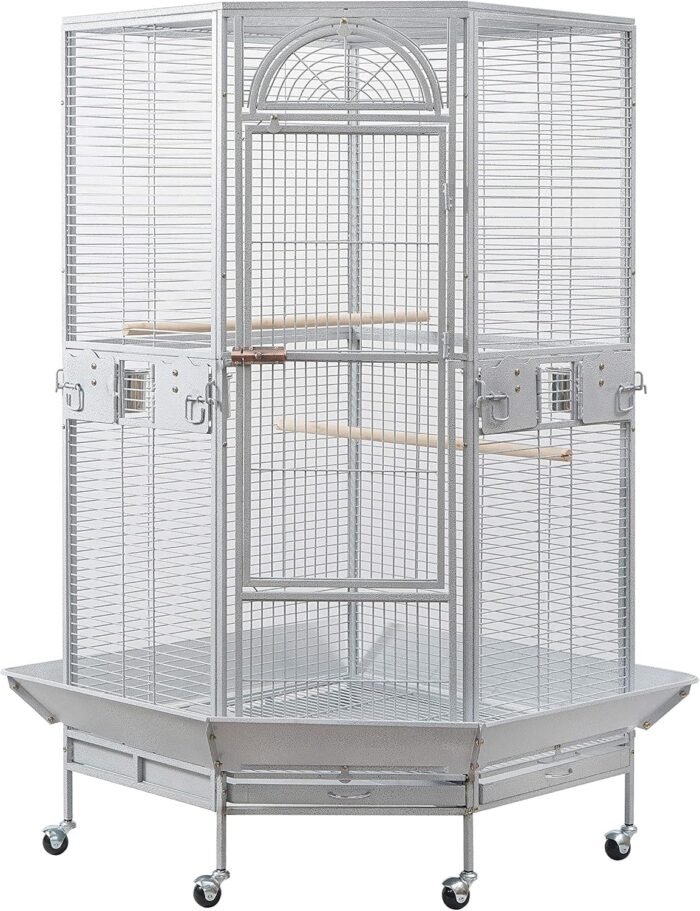 The Space Saving Corner Bird Cage is a thoughtfully designed aviary that provides a comfortable and stimulating environment for your feathered friends. With its unique corner design, this cage is perfect for small to medium-sized birds, including budgies, parakeets, cockatiels, and more.