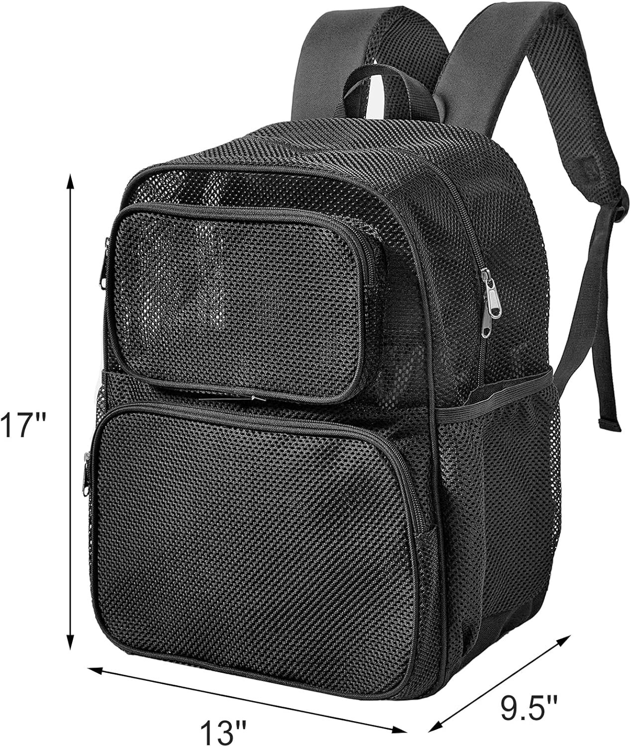 Our Semi-Transparent Mesh Backpack measures 17” x 12 1/2” x 9” and is designed to provide ample space for storing various items. The comfortable double-padded straps and unique mesh design make it an ideal choice for those who need a versatile and durable backpack.