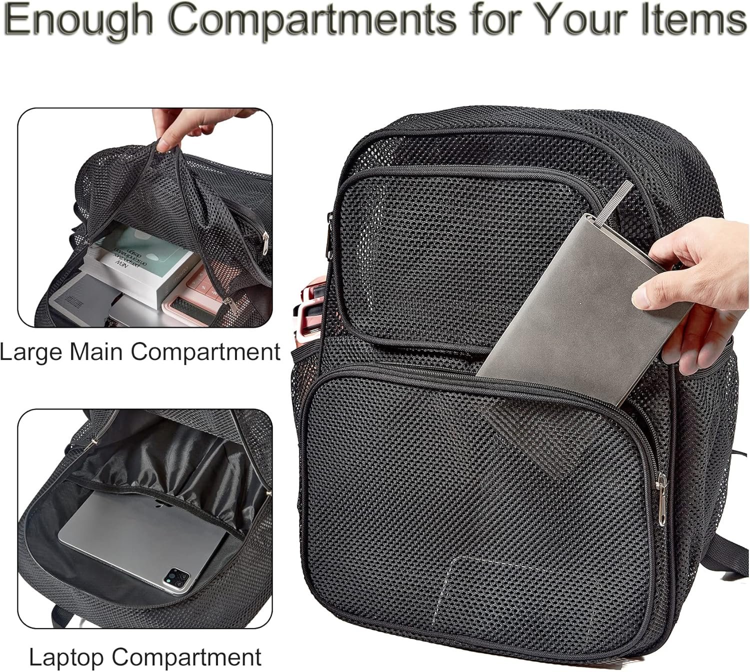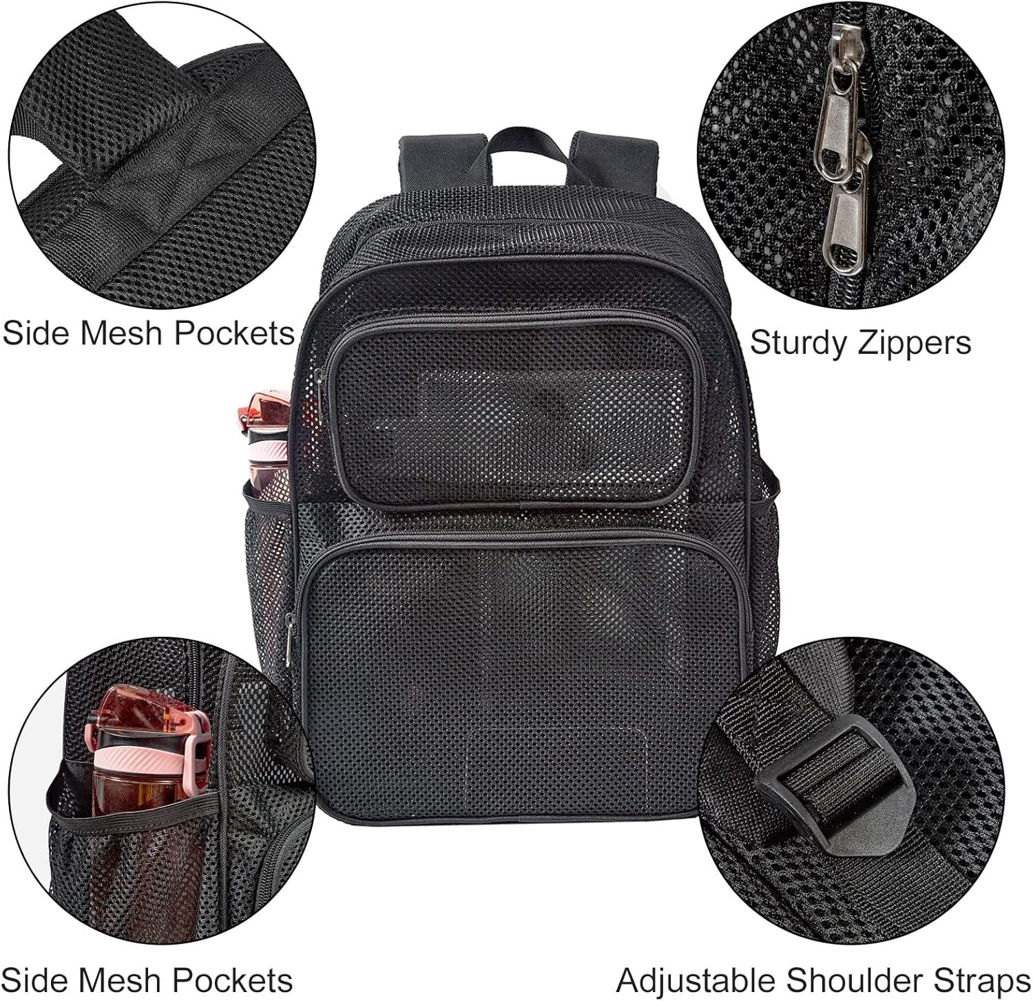Our mesh backpack is made with a unique design and durable construction, featuring piping around the sides for added strength. It’s sturdy enough to hold heavy books or work supplies.