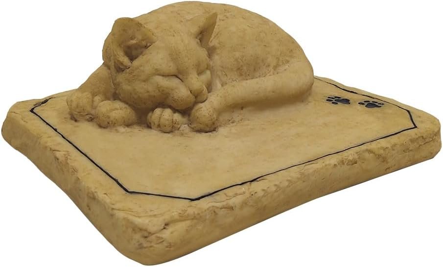 This cat memorial stone features an adorable sleeping cat statue on top and supports 100% customization. Made of high-quality polyresin, it is treated with a special finish for protection against the sun and water. You can place this unique cat garden stone alongside a walkway, under your favorite tree, near a flower bed, or on a porch or patio. Keep you and your pet together in spirit forever.