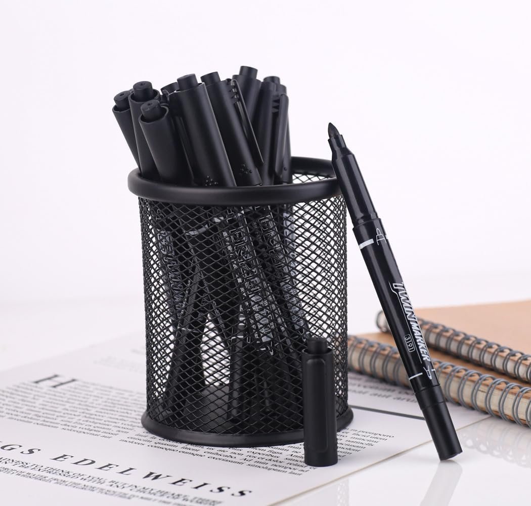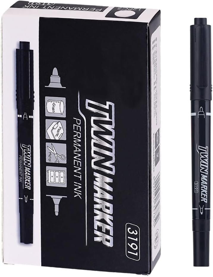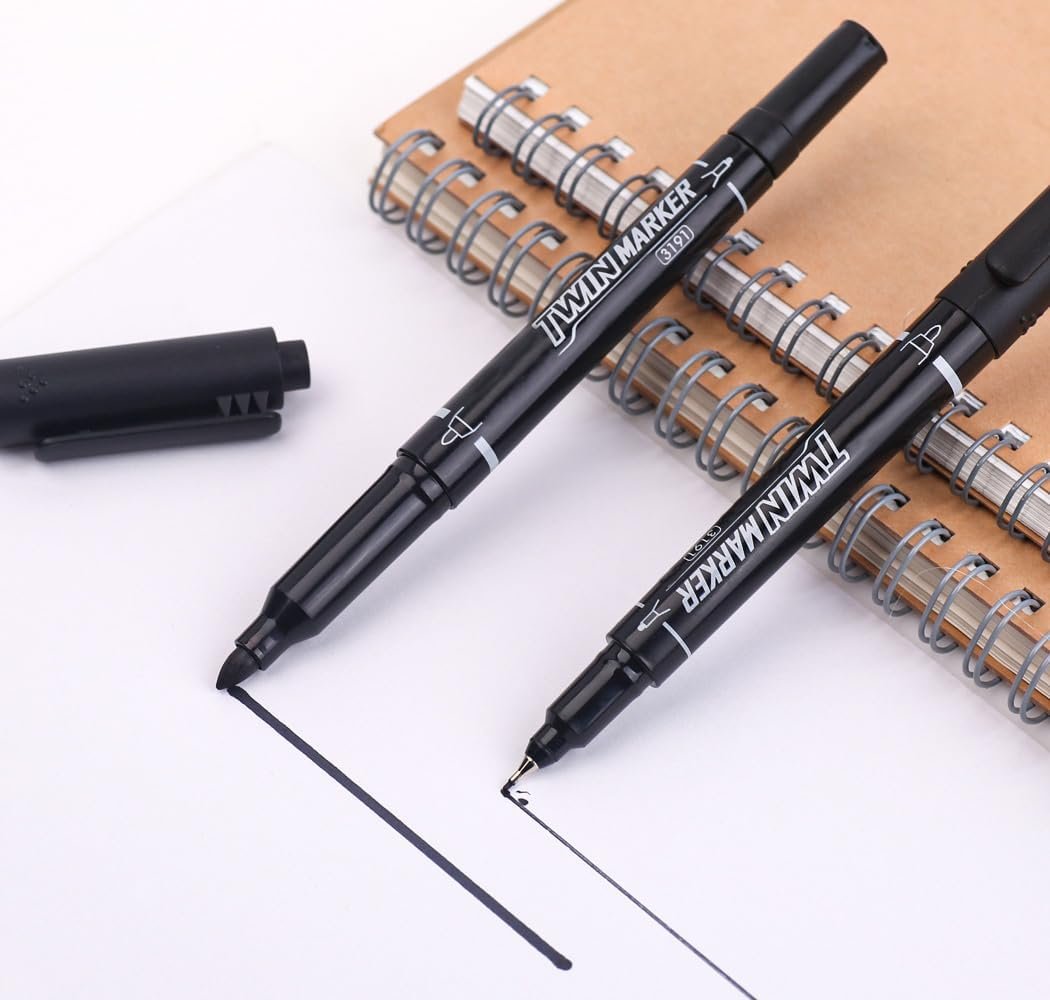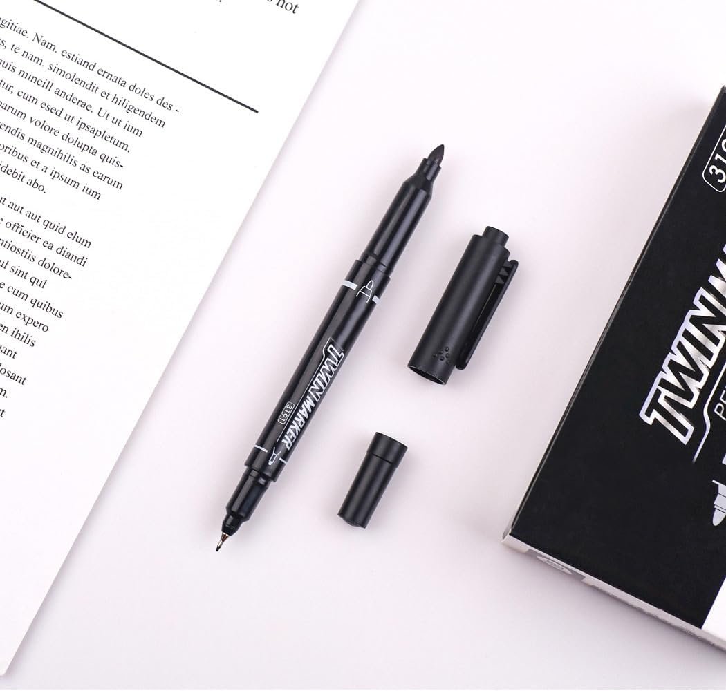 Home Cats czxwyst 3191 Double Ended Permanent Marker Pens,Fine and Extra Fine Nib Twin Marker,12 Count (Black)
