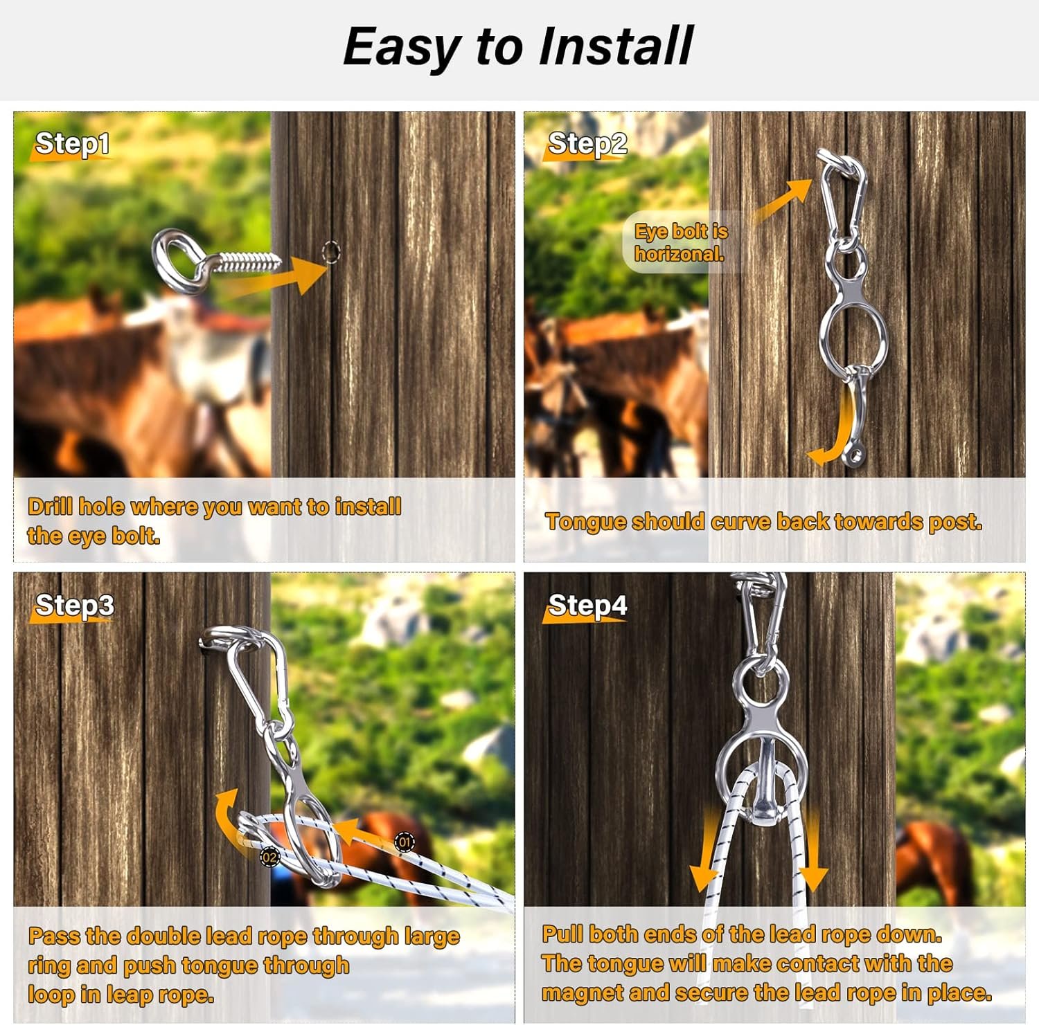- Safe and Flexible: The magnetic attraction and stays of the horse tie ring tongue make tying your horse safer and more flexible.