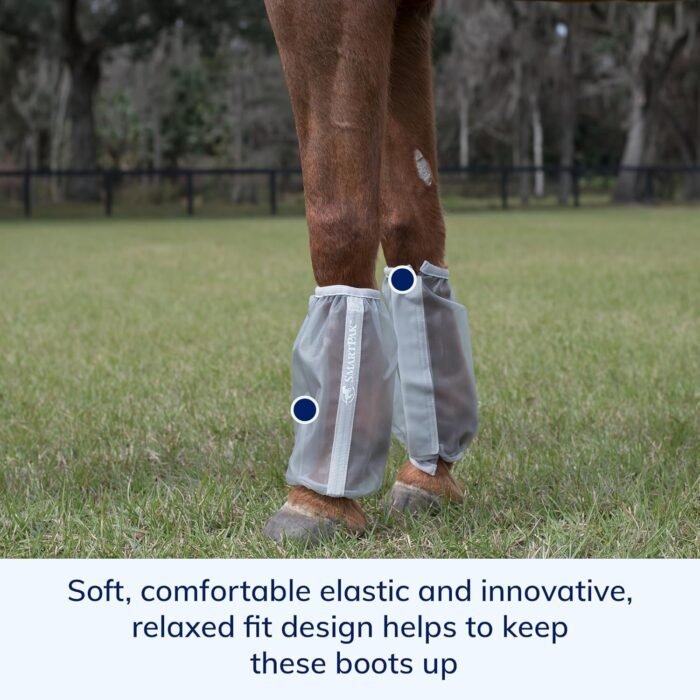 The SmartPak Deluxe Relaxed Fit Fly Boots are designed to provide optimal comfort and protection for your horse’s legs from irritating flies and other insects. Crafted from soft yet durable mesh, these boots offer a reliable barrier against pests while ensuring breathability and comfort.