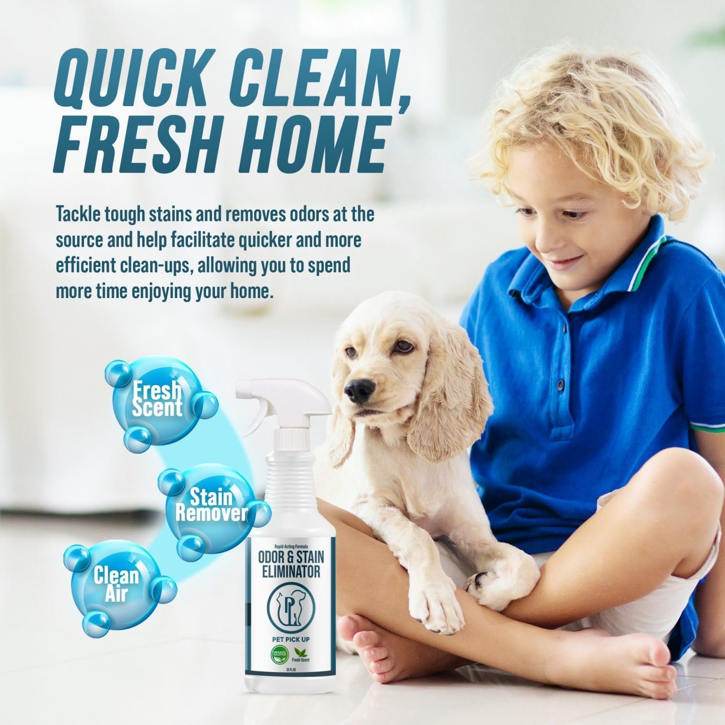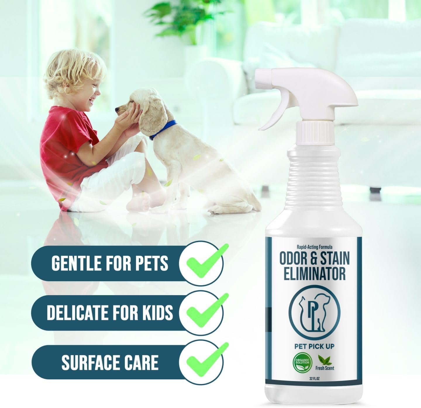 Tackle pet accidents fast with Pet Pick Up, an enzymatic pet stain & odor remover that breaks down dog and cat urine, feces, and vomit at the source so smells don’t return. The non-toxic formula neutralizes tough odors on carpets, rugs, upholstery, crates, litter boxes, and artificial turf, restoring rooms without heavy perfumes.