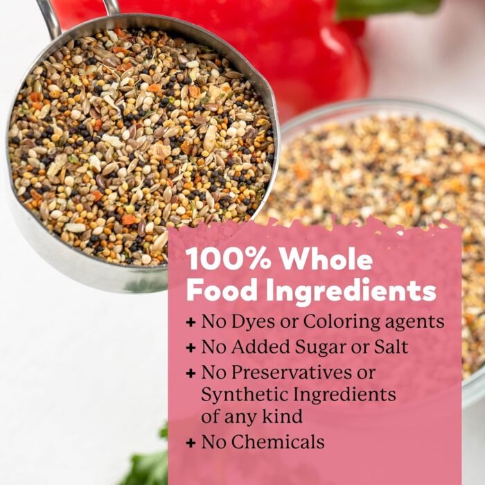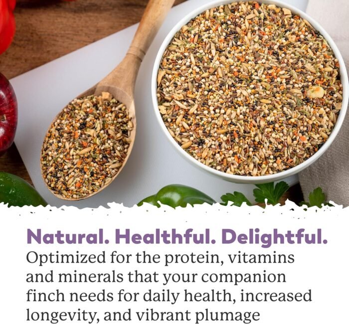 Made in the USA using high-quality, all-natural ingredients, this finch bird food supports the dietary needs of both indoor birds and wild finches. The food is made with the highest quality seeds, nuts, vegetables, fruits, and grains, which are rich in protein, fat, fiber, and other essential nutrients that finches need to thrive in the wild.