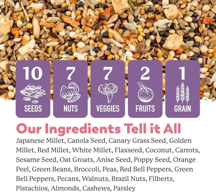 • High protein, fat, and fiber blend of seeds and nuts for optimal nutrition
