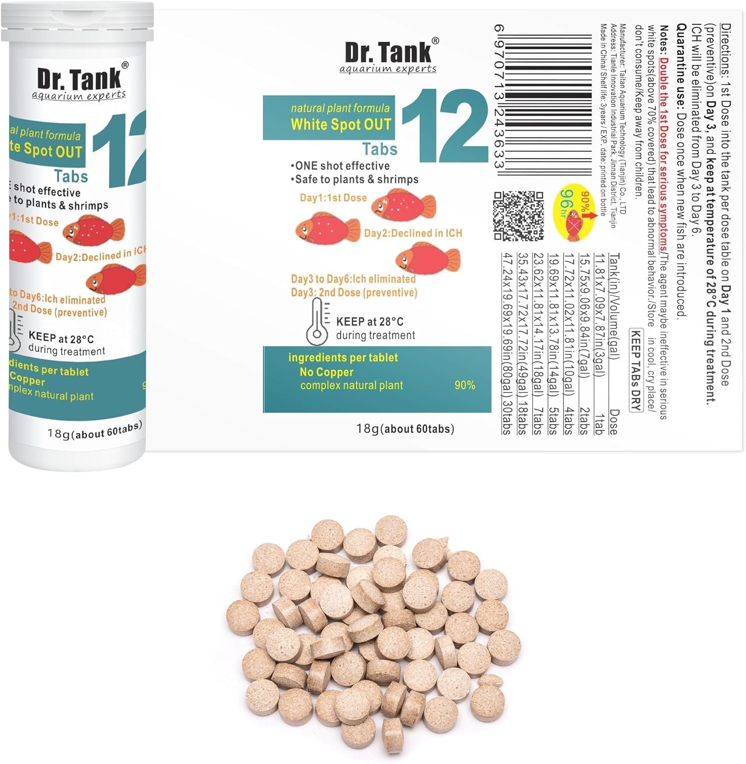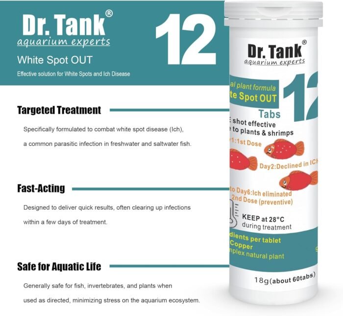 Dr. Tank #12 White Spot Out – Ich Treatment for Freshwater Fish – Eliminates Ick White Spot Disease – Safe for Aquatic Plants – 60 Tablets