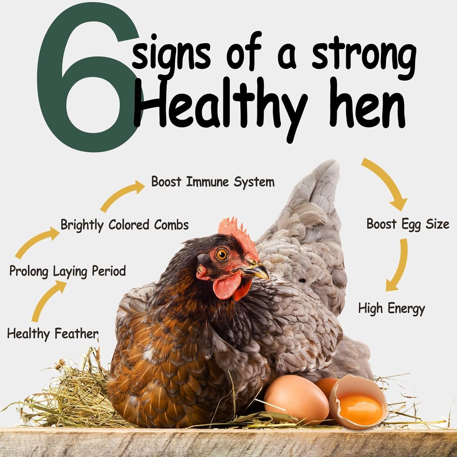 • Increases egg production and strengthens eggshells