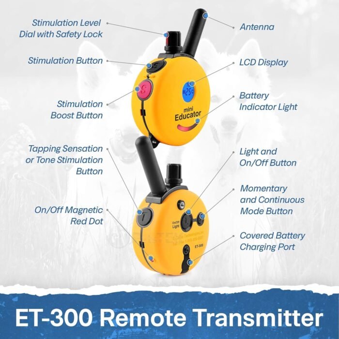 - Waterproof: Both the collar and remote are fully waterproof, making them suitable for training in wet conditions.