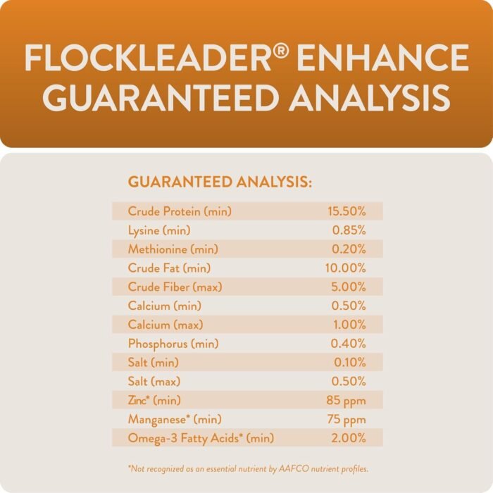 - Exclusive Functional Pellet: Enhance is made with an exclusive functional pellet containing key nutrients like the amino acid lysine to support egg production and increase egg weight, zinc to support calcium metabolism and keep bones strong while producing eggs, and manganese to support fat metabolism and liver function.