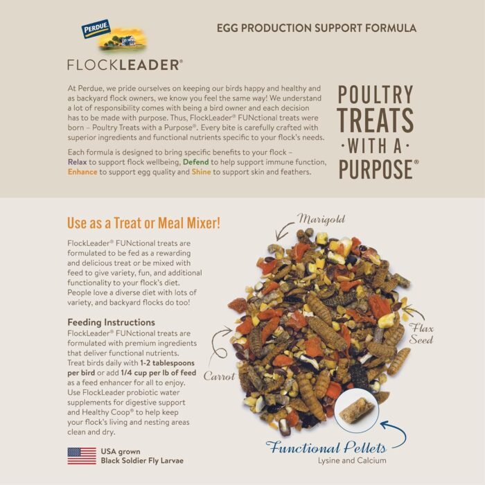 - Poultry Treats with a Purpose: Feed as a rewarding and delicious treat or mix with feed to give variety, fun, and additional functionality to your flock’s diet.