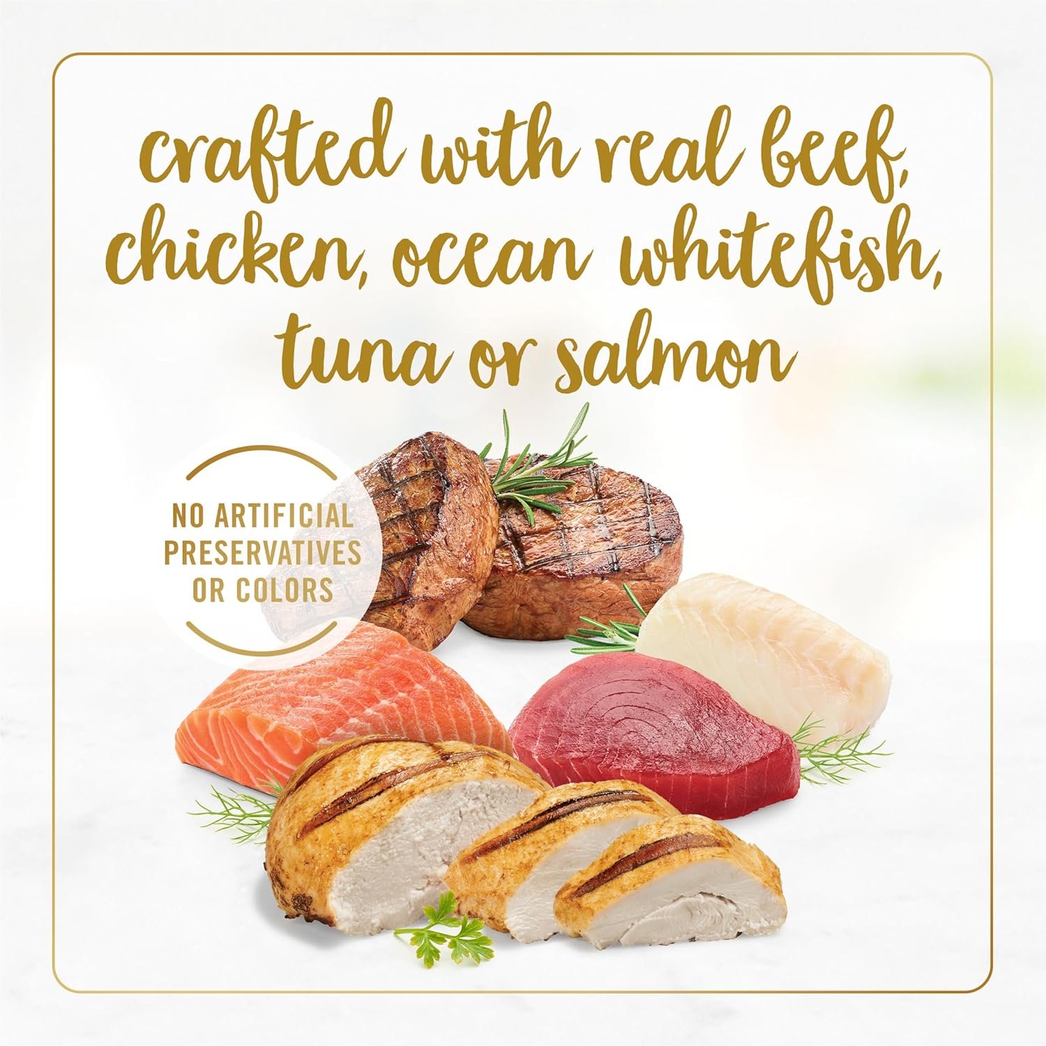 - Wet cat food variety pack featuring formulas crafted with real beef, chicken, ocean whitefish and tuna, or salmon
