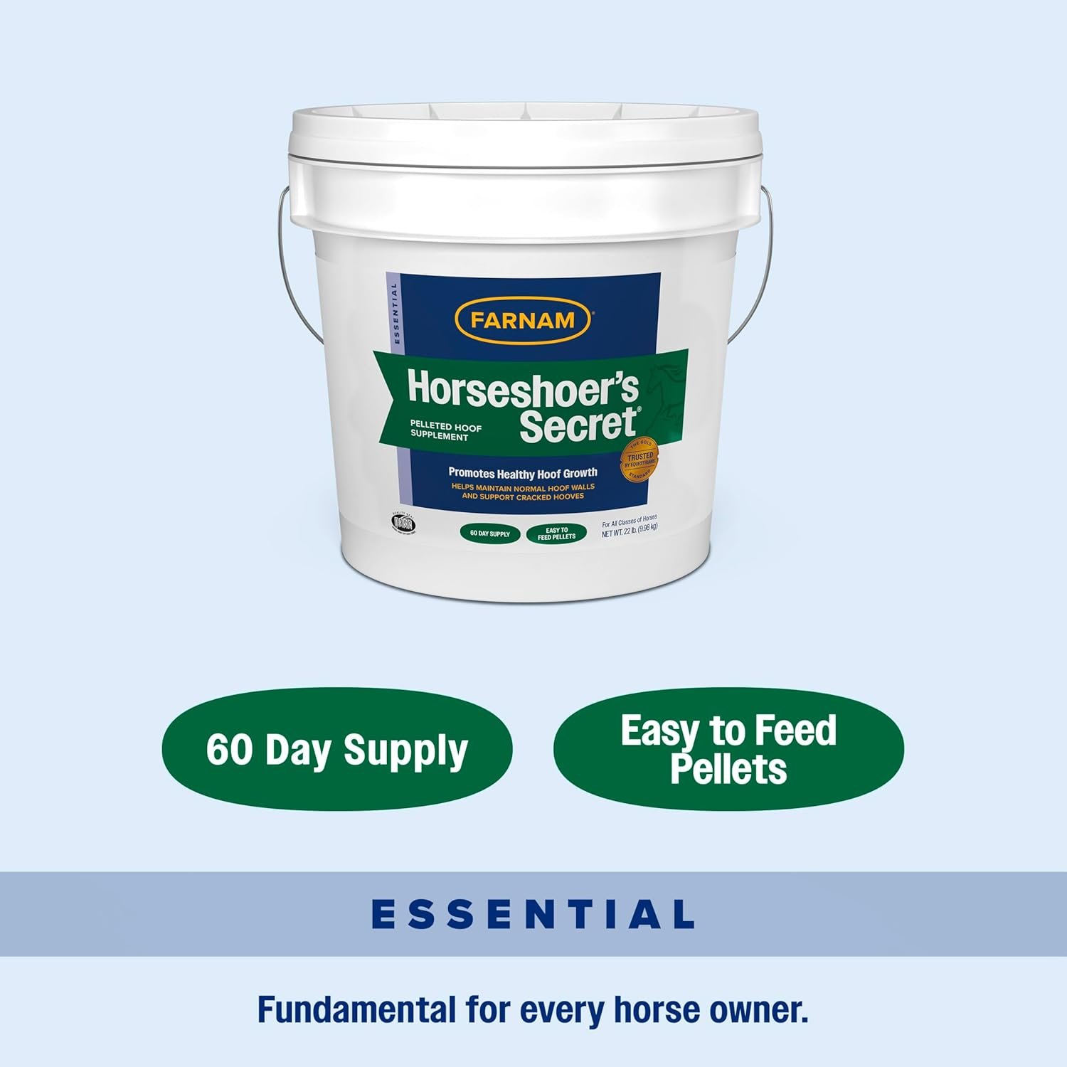 REVOLUTIONIZE YOUR HOOF CARE ROUTINE by promoting healthy hoof growth from the inside out. HELPS KEEP HOOVES HEALTHY AND STRONG by supporting hoof walls and cracked hooves. NUTRIENT-RICH FORMULA combines biotin, key amino acids lysine and methionine, vital minerals copper and zinc, as well as omega-3 and -6 fatty acids for proper hoof health. PALATABLE ALFALFA-BASED PELLETS mix in easily with your horse’s daily grain ration. TRUSTED BRAND is recommended by farriers and equine professionals for horses needing additional nutritional support for healthy hooves. Provides a 60-day supply at 6 oz. serving per day for one horse.
