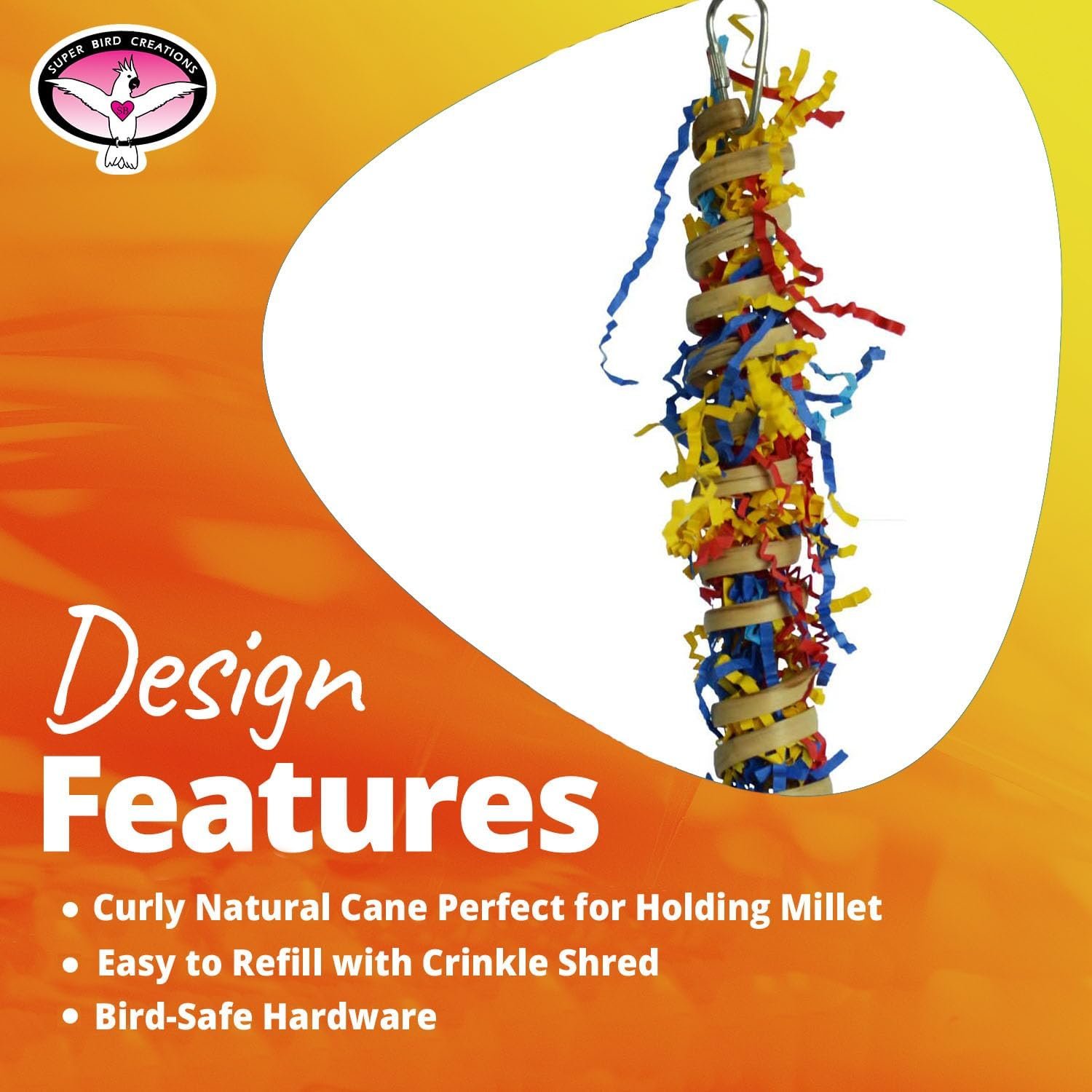Super Bird Creations offers a variety of bird toys designed to address the instinctual needs of pet birds, providing them with opportunities to chew, forage, preen, and explore. Our bird toys are made with safe and natural materials, ensuring the well-being of your pet bird.