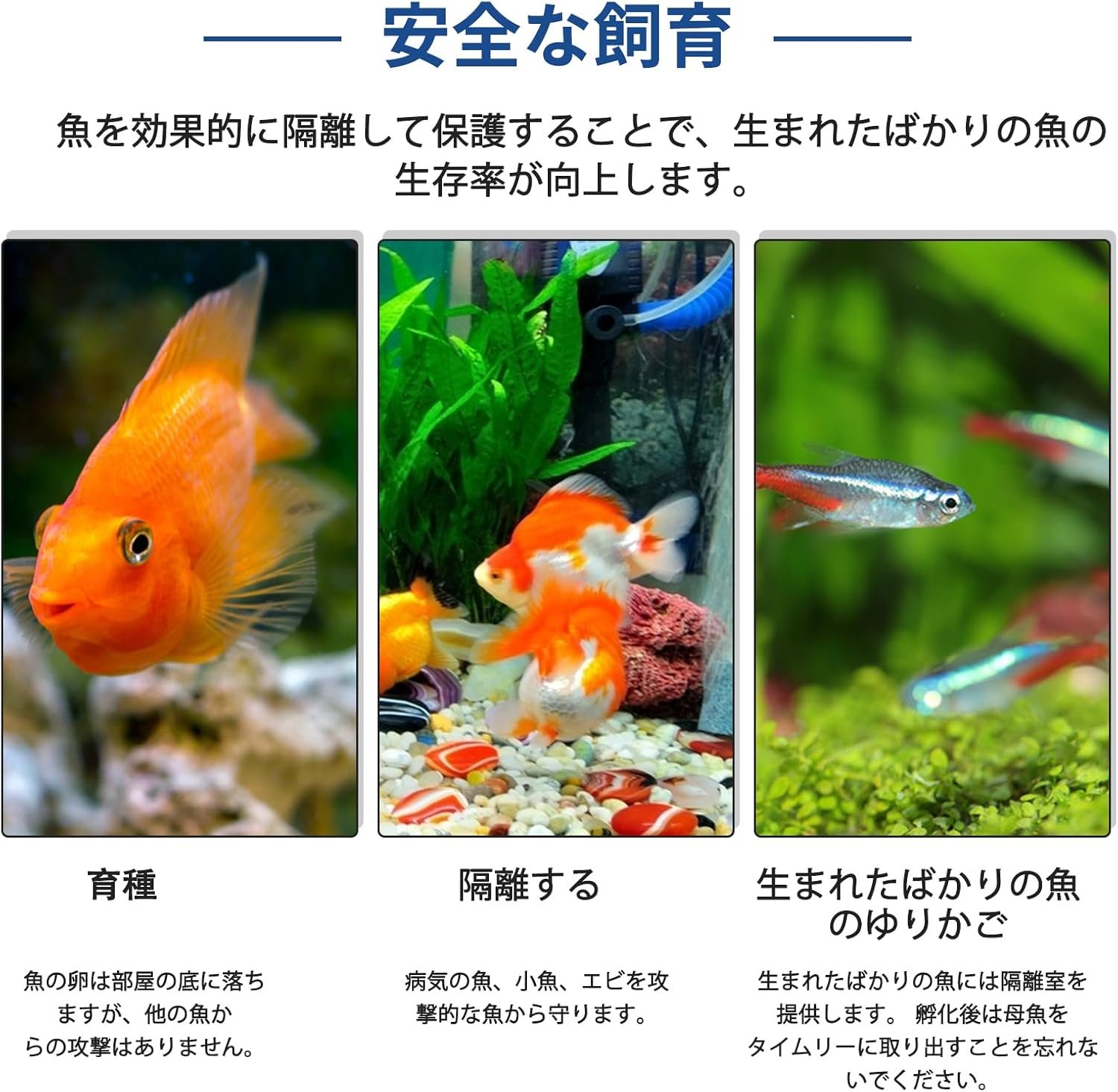 • Provides a safe and private space for fish to grow healthily without interference