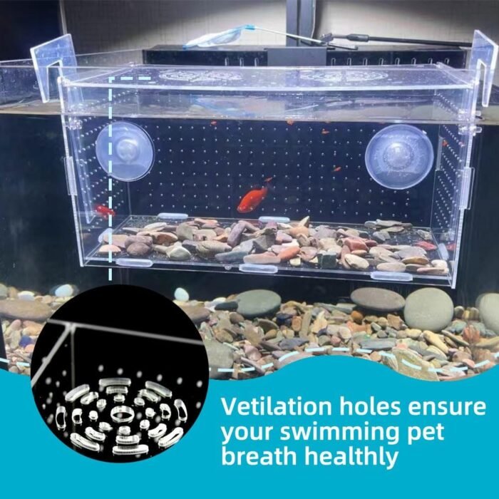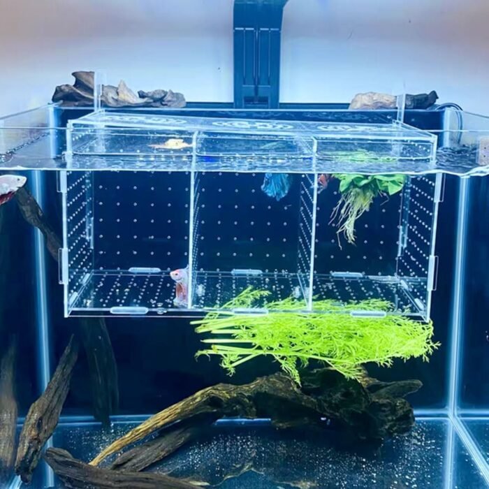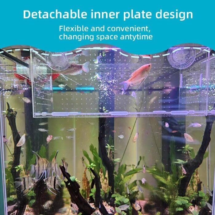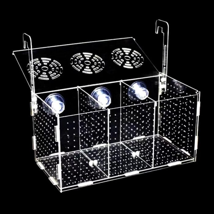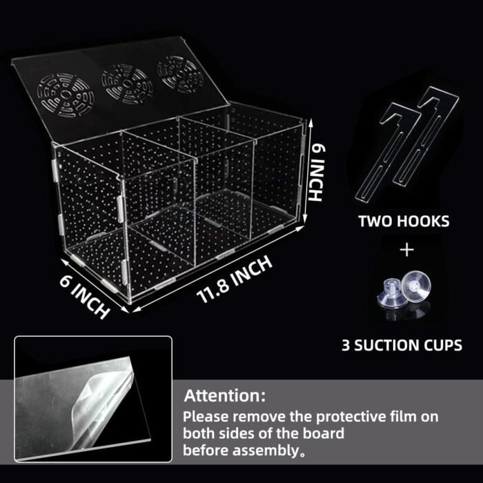 The fish breeder box is a versatile and practical tool for aquarium enthusiasts, designed to provide a safe and healthy environment for breeding and incubating different kinds of fish. The inside of the fish tank measures 11.8*5.9*5.9 inches and features three isolated rooms, allowing for the separation of various fish species.