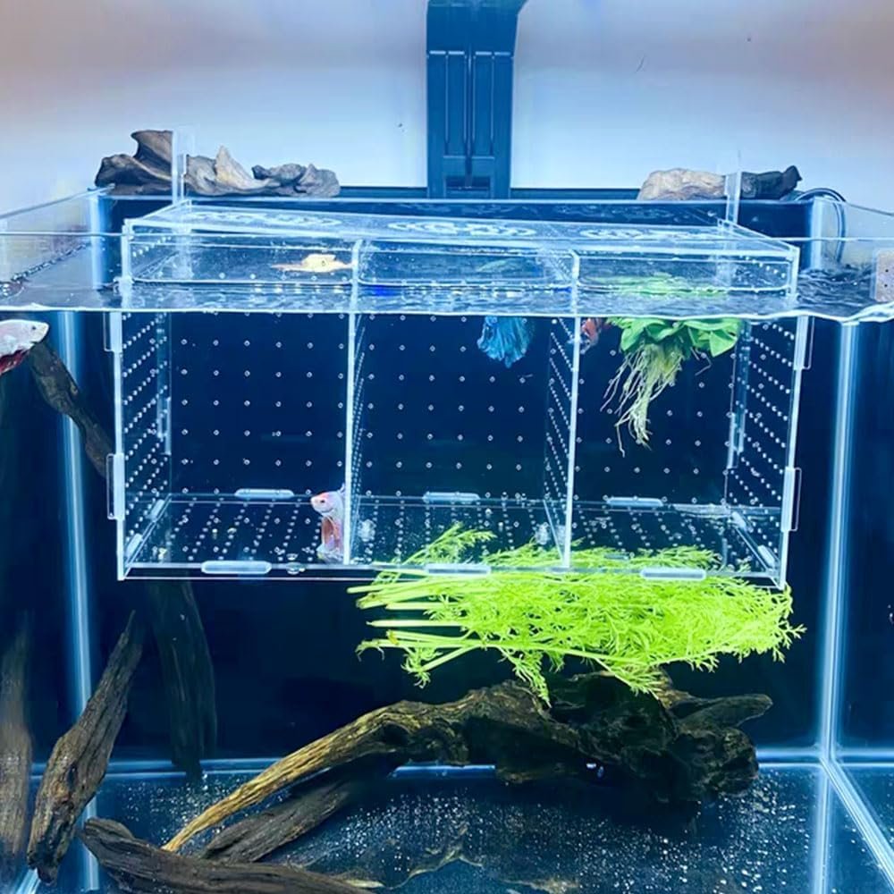 Home Fish & Aquatic Pets Fish Breeding Box, Acrylic Isolation Box Separator for Aquarium Hatchery Incubator with Suction Cups for Baby Fish Shrimp Clownfish (11.8 * 5.9 * 5.9 inch)