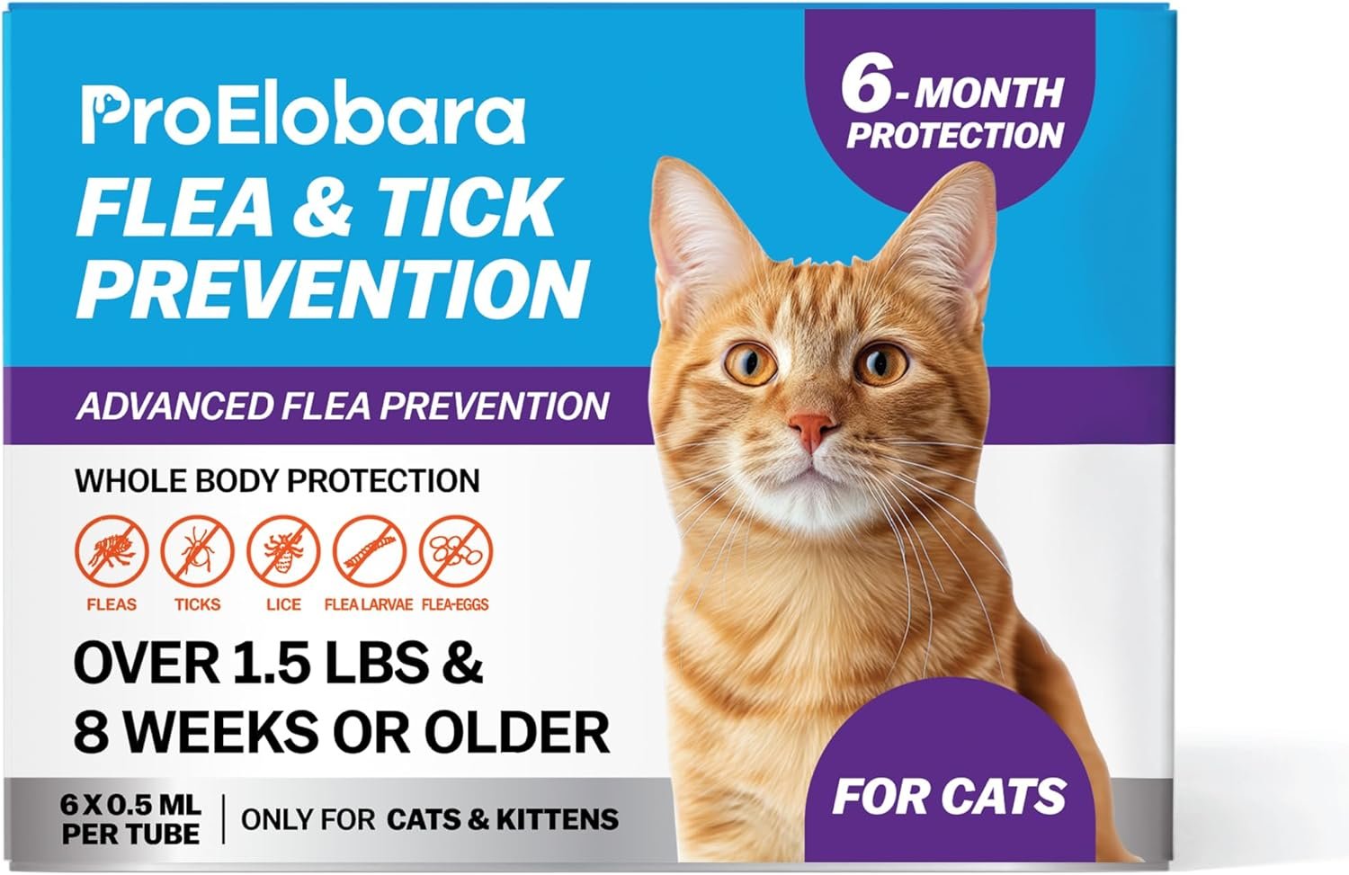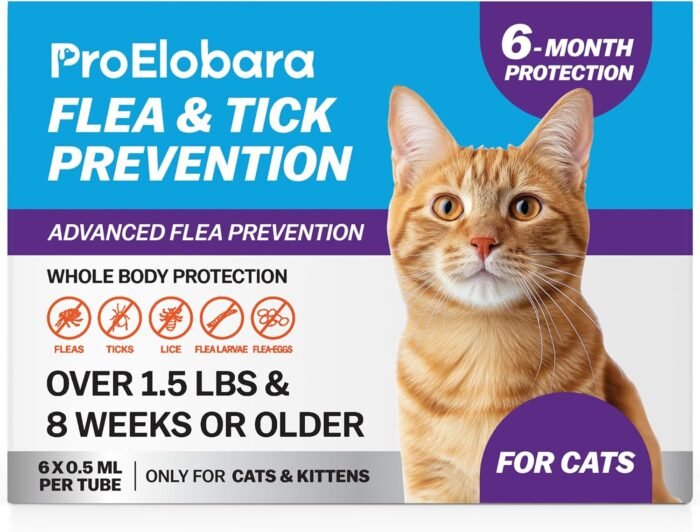 Our cat flea and tick treatment is formulated with vet-approved ingredients to quickly treat fleas, ticks, larvae, and eggs, providing up to 30 days of continuous protection. Designed specifically for cats, our formula is safe for felines weighing over 1.5 lbs, making it suitable for kittens, adult cats, and senior cats. Gentle and non-irritating, it’s ideal for cats with sensitive skin.