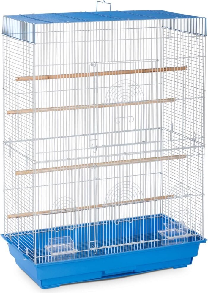 The Prevue Pet Products Flight Cage in Blue and White (SP42614-3) is a spacious and well-designed aviary intended for housing multiple parakeets, canaries, or finches. This cage is tailored to provide ample space for small birds to fly and play, ensuring their health and happiness.
