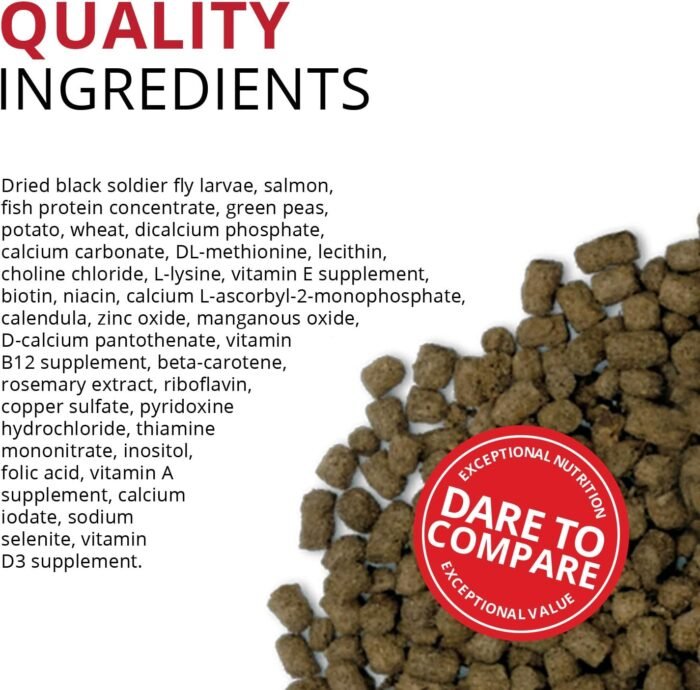 • Unique insect-based formulation with up to 40% nutrient-rich Black Soldier Fly Larvae as the first ingredient.