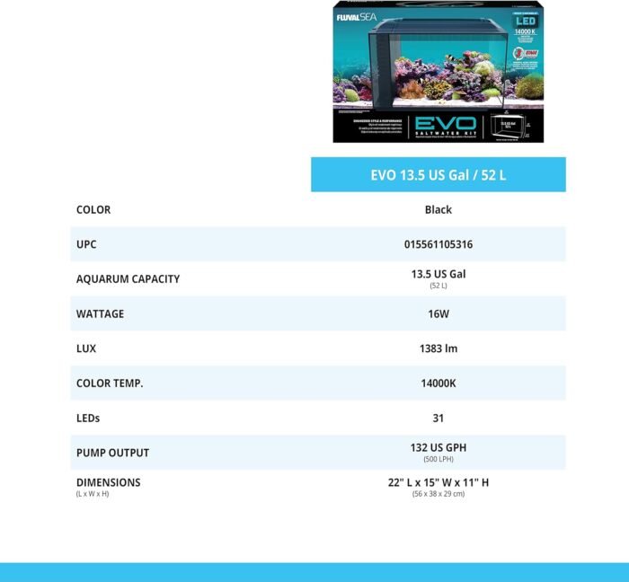 Be the first to review “Fluval Evo XII Saltwater Aquarium Kit, 13.5 Gal. – Saltwater Fish Tank with Reef-Capable LED, Efficient 3-Stage Filtration and Seamlessly Integrated Hardware” Cancel reply